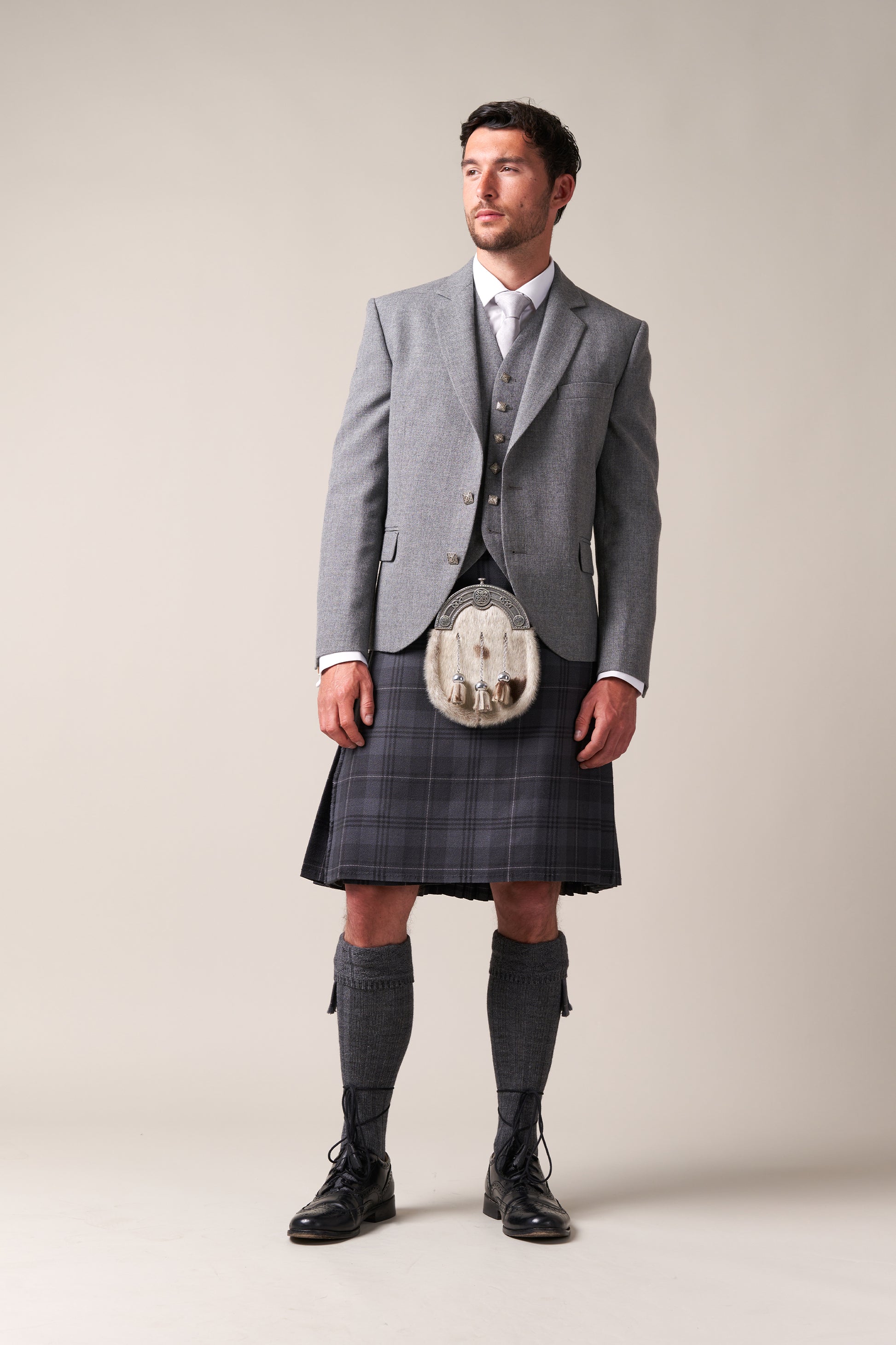 Originally part of our hire collection, this Ex Hire Grey Granite kilt offers the same quality construction and traditional finish you would expect from a McCalls kilt, at a more accessible price than made to measure options.