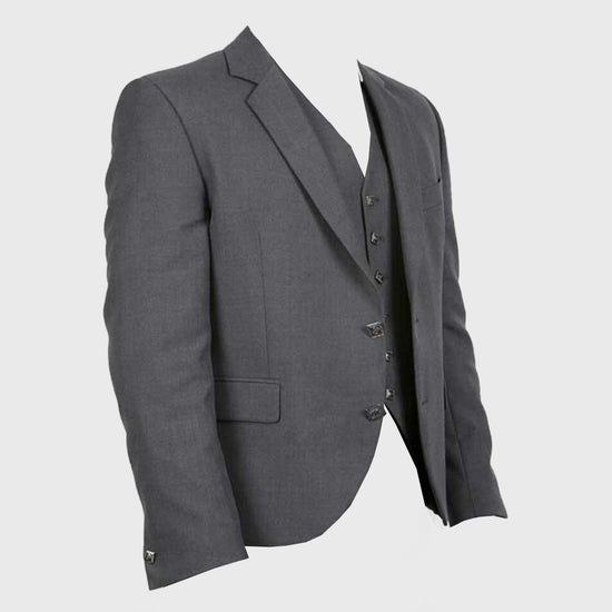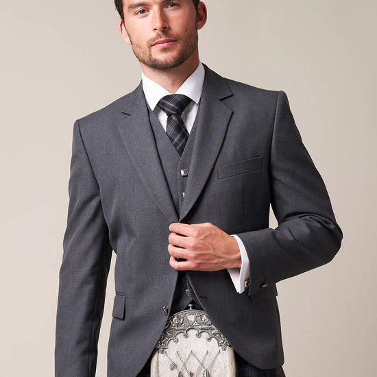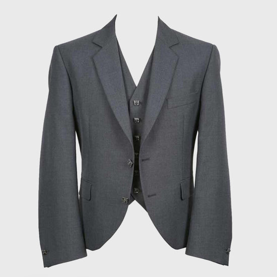 This Silver Grey Contemporary Jacket mixes timeless style with modern refinement. The single-breasted jacket features a smart two-button closure, with single-button vented cuffs. Traditional silver, square buttons add a distinctive touch, with the lining finished in a sharp, dark grey/silver fabric, for a polished, cultured look.