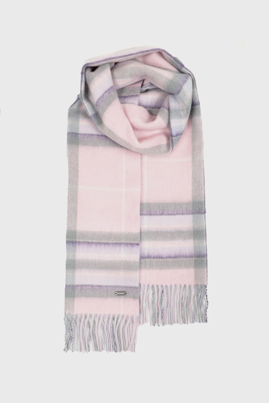 The Double Faced Cherry Blossom Pride & Grey Scarf offers two stylish looks in one, crafted from a luxurious blend of 90% wool and 10% cashmere for softness, warmth, and lightweight comfort. One side features the delicate Cherry Blossom Pride tartan in light pink with accents of grey and blue, while the reverse showcases a plain grey finish, giving you the choice between a patterned or understated style.