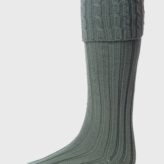 Merino wool blend sock with a fully reinforced foot, plain rib leg and vertical patterned top.