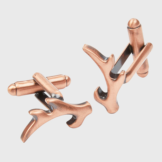 Cufflinks in the shape of antlers. A pewter silver intricate design with copper finish.