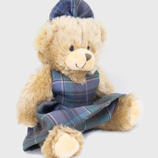 Bella Bear in Weathered Pride of Scotland tartan dress and bow. A charming Scottish teddy bear gift or souvenir.
