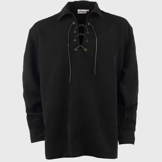 A modern interpretation of traditional Highland dress, the black ghillie shirt is designed for comfort, versatility, and style. Cut from lightweight, breathable fabric, it features the classic lace-up front with leather ties, offering a relaxed yet distinctive look. Equally at home paired with a kilt for formal occasions or worn casually with trousers, it’s a timeless piece that brings effortless Highland heritage into everyday wear.