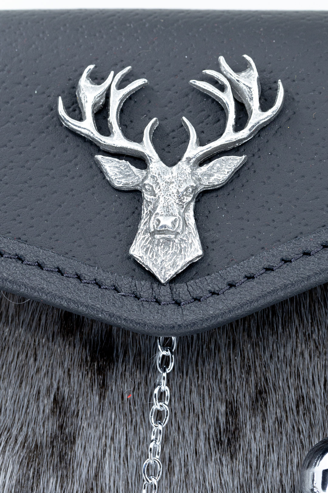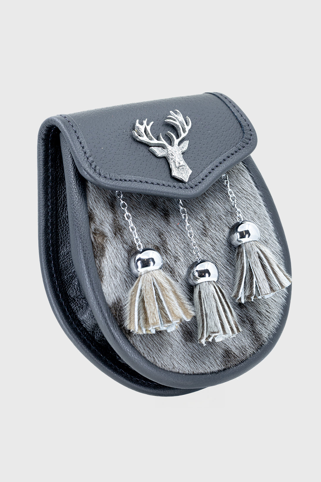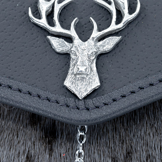 Ideal for weddings, ceilidhs, Burns Night, and other formal or semi-formal Highland occasions, this Scottish semi-dress sporran adds a refined and authentic touch to your kilt outfit. The grey skin contrasts elegantly with the black leather, while the stag decal and laser etching celebrate classic Highland heritage. Made with care, each sporran showcases the beauty of traditional Scottish design while providing practical use as part of your Highland dress.
