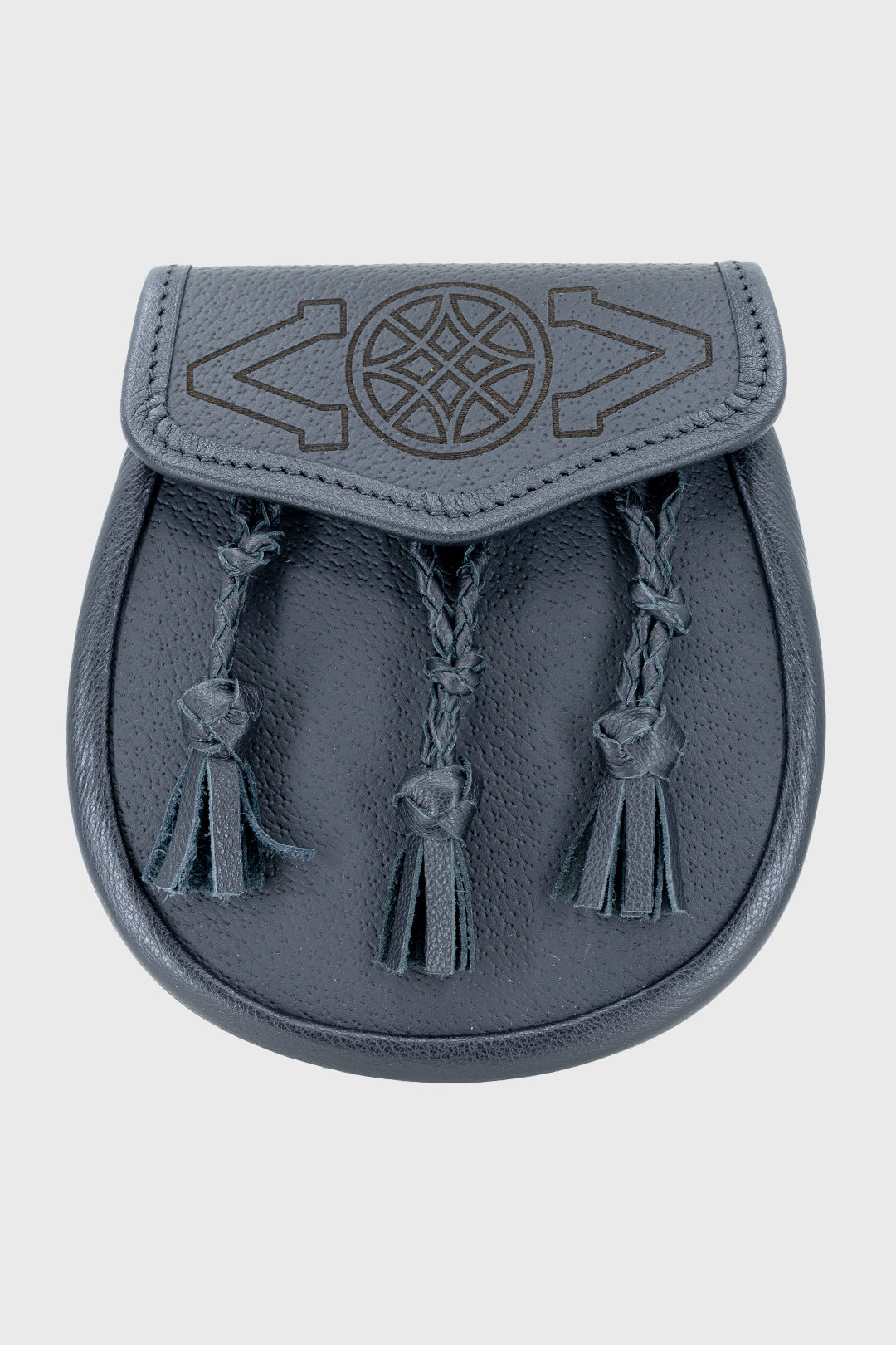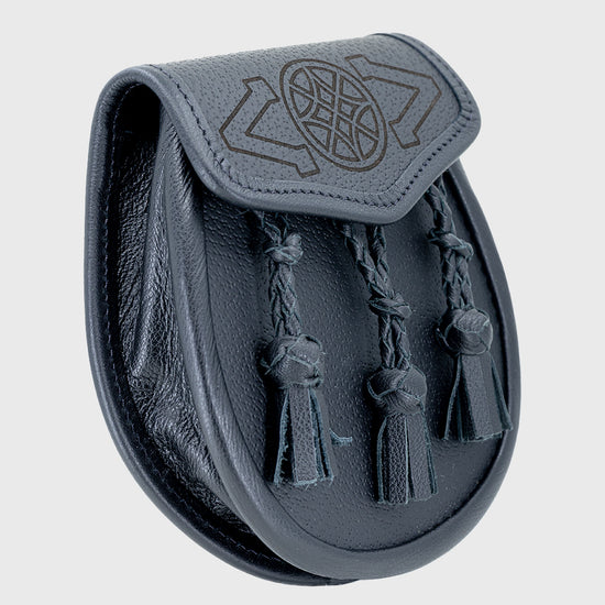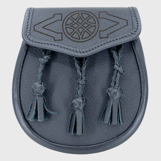 Keep your Highlandwear classic and practical with this simple black leather day sporran, featuring matching tassels with knot details and Celtic detailing. Designed for everyday wear, this traditional sporran offers both style and functionality, making it an essential part of your kilt outfit.