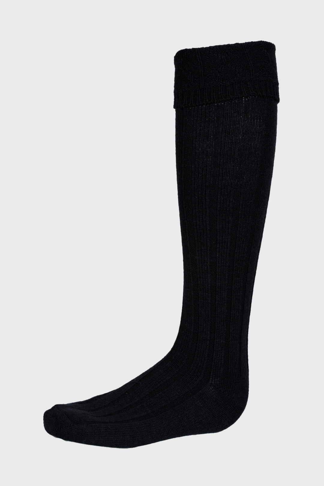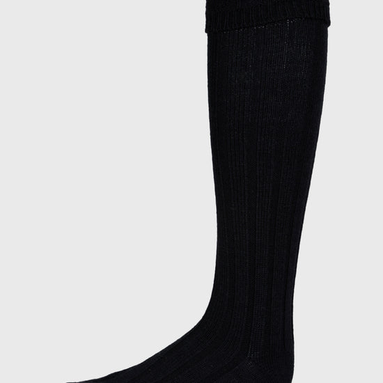 Black wool mix socks with a plain leg and a slight square pattern top.