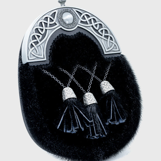 Ideal for weddings, formal events, ceilidhs, and Burns Night celebrations, this Scottish dress sporran is the perfect finishing touch to any kilt outfit. The seal fur front adds a luxurious texture, while the grey cantle provides a stylish and contemporary edge to a timeless Highland accessory. Crafted with care, each sporran showcases the beauty of traditional Scottish design while providing practical use as part of your Highland dress.