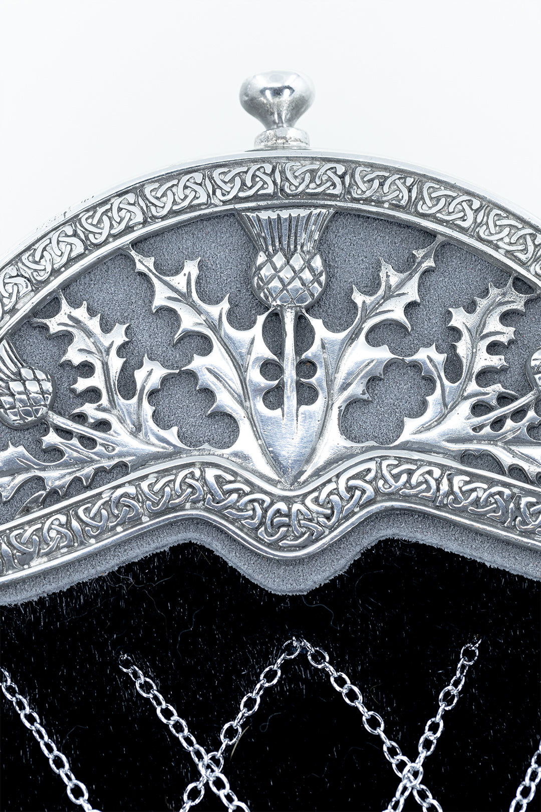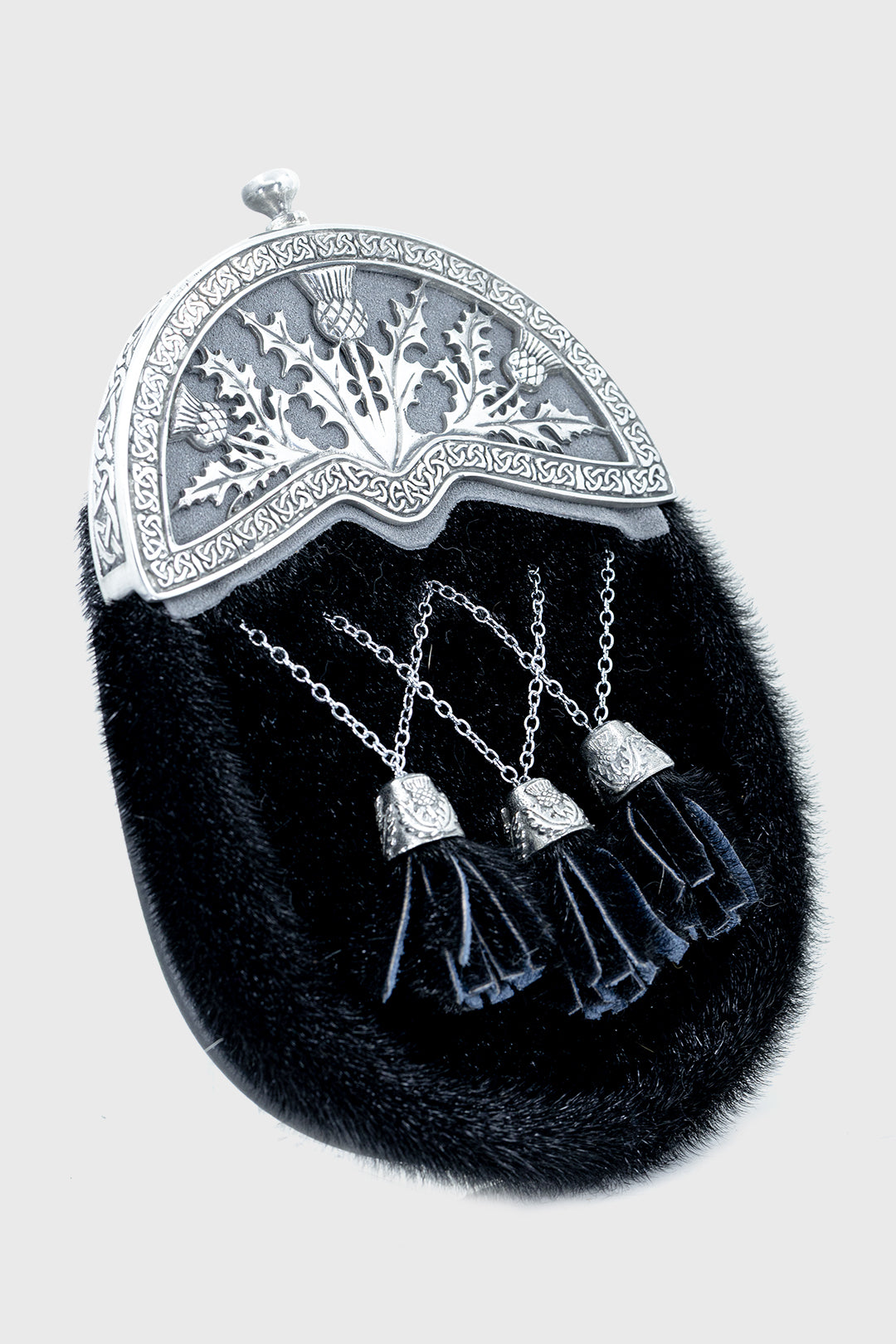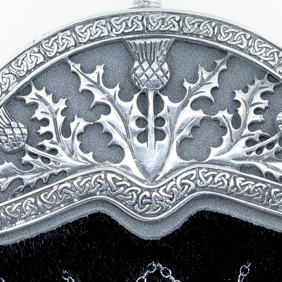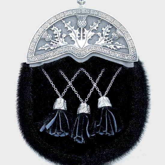 Perfect for weddings, ceilidhs, Burns Night, or any formal Highland gathering, this dress sporran complements your kilt and jacket ensemble with style and authenticity. The sleek black seal fur adds a refined texture, while the thistle cantle pays tribute to classic Scottish heritage. Handcrafted with care, each sporran reflects the beauty of traditional design while remaining practical as part of your Highland dress.