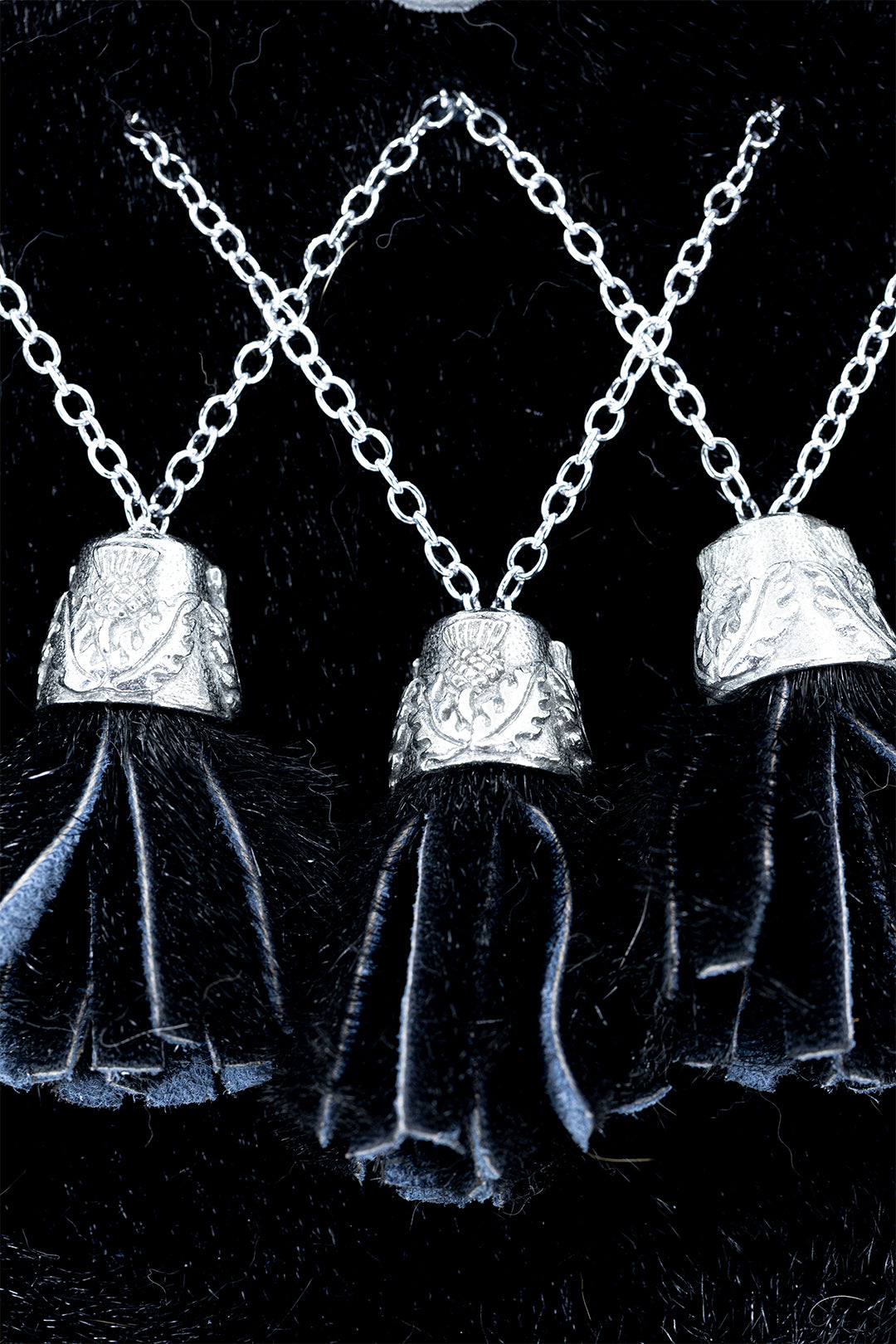 Add a touch of classic elegance to your Highlandwear with this Black Seal Dress Sporran, featuring a striking chrome thistle cantle. Designed for formal occasions, this traditional Scottish sporran is finished with three straight tassels and matching cone tops, offering a timeless and distinguished look.