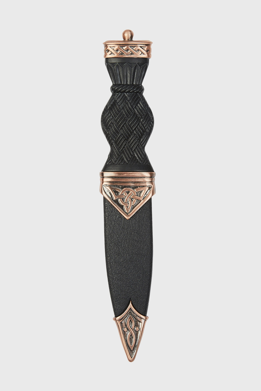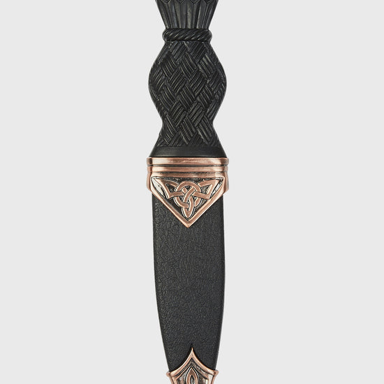 Celtic Sgian Dubh with copper finish mounts, a plain top and a polyresin handle.