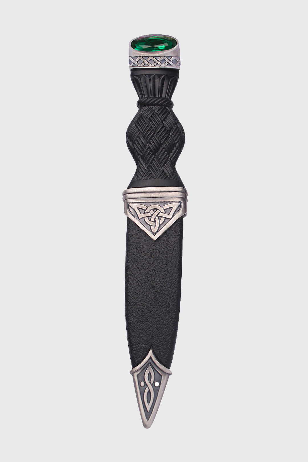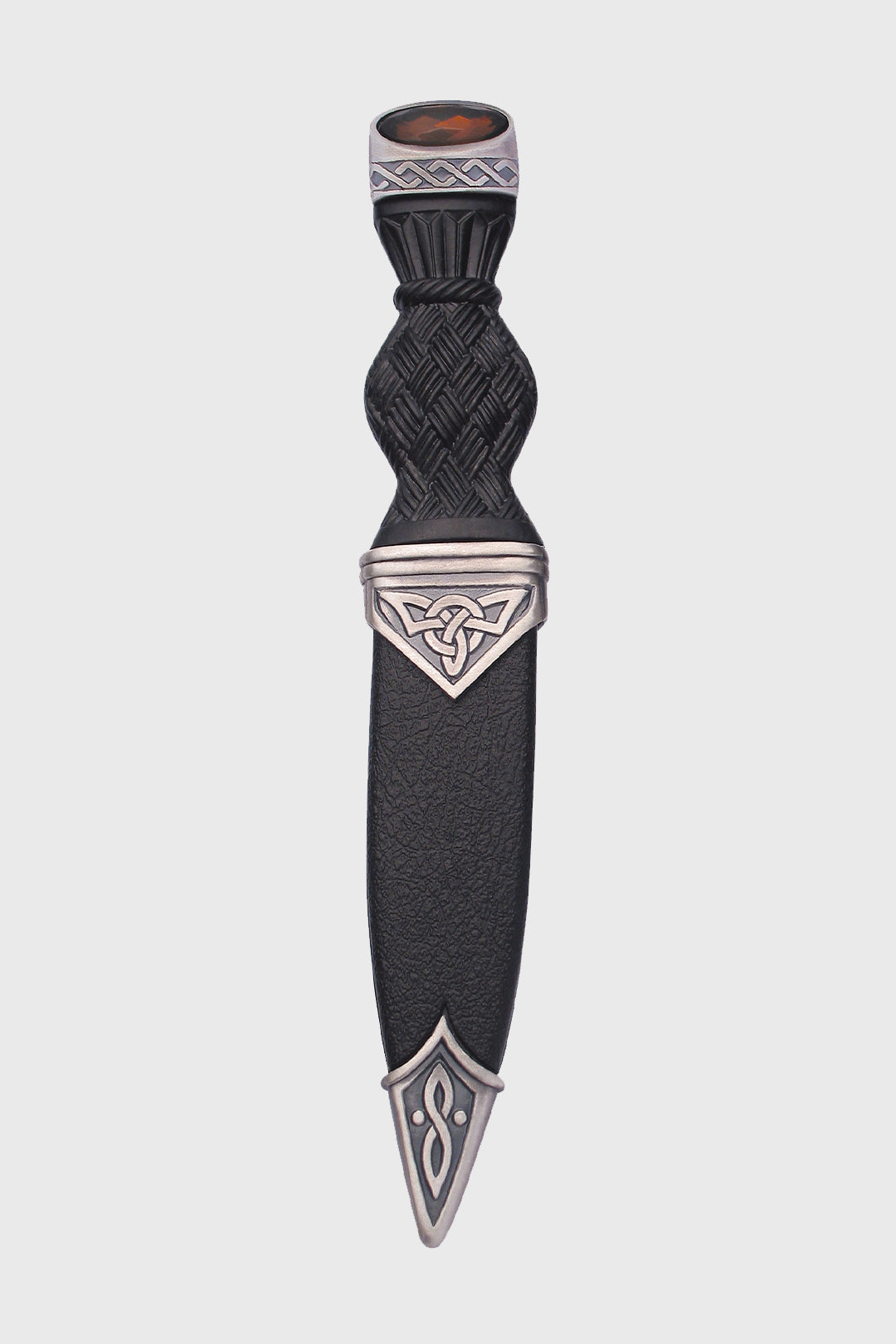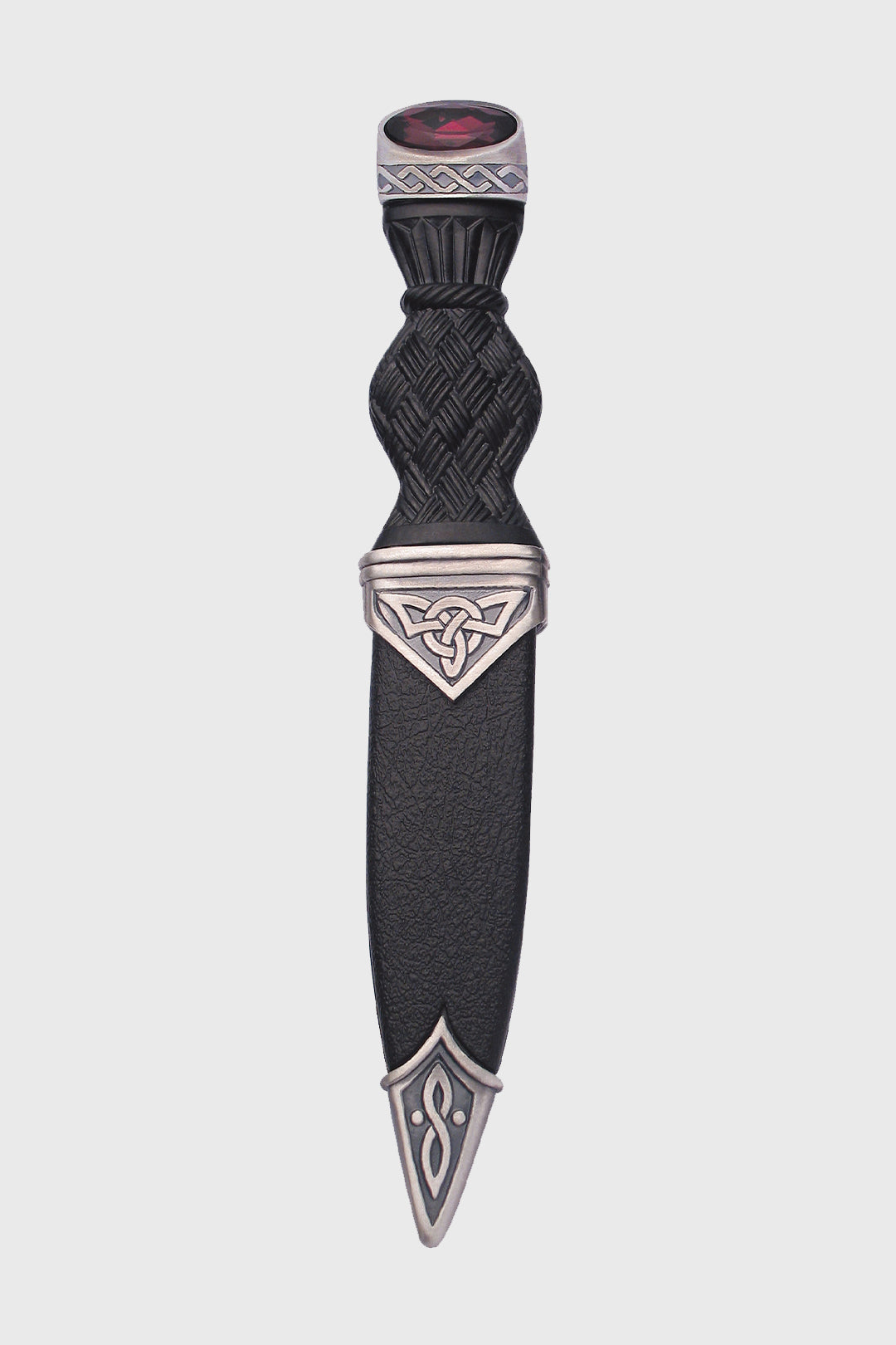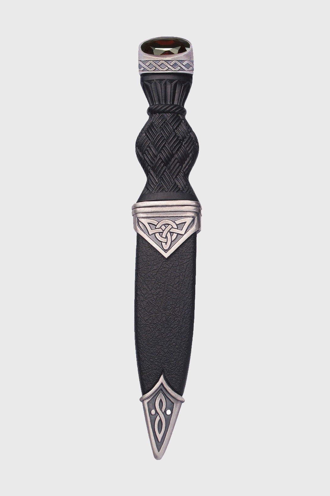 Enhance your Highlandwear with this traditional Celtic Sgian Dubh, finished with detailed plated mounts and topped with a striking coloured stone. Choose a coloured stone to complement your kilt outfit or pick your favourite from a range of timeless options: Amethyst, Blue, Cairngorm, Emerald, Jet Black, or Red.
