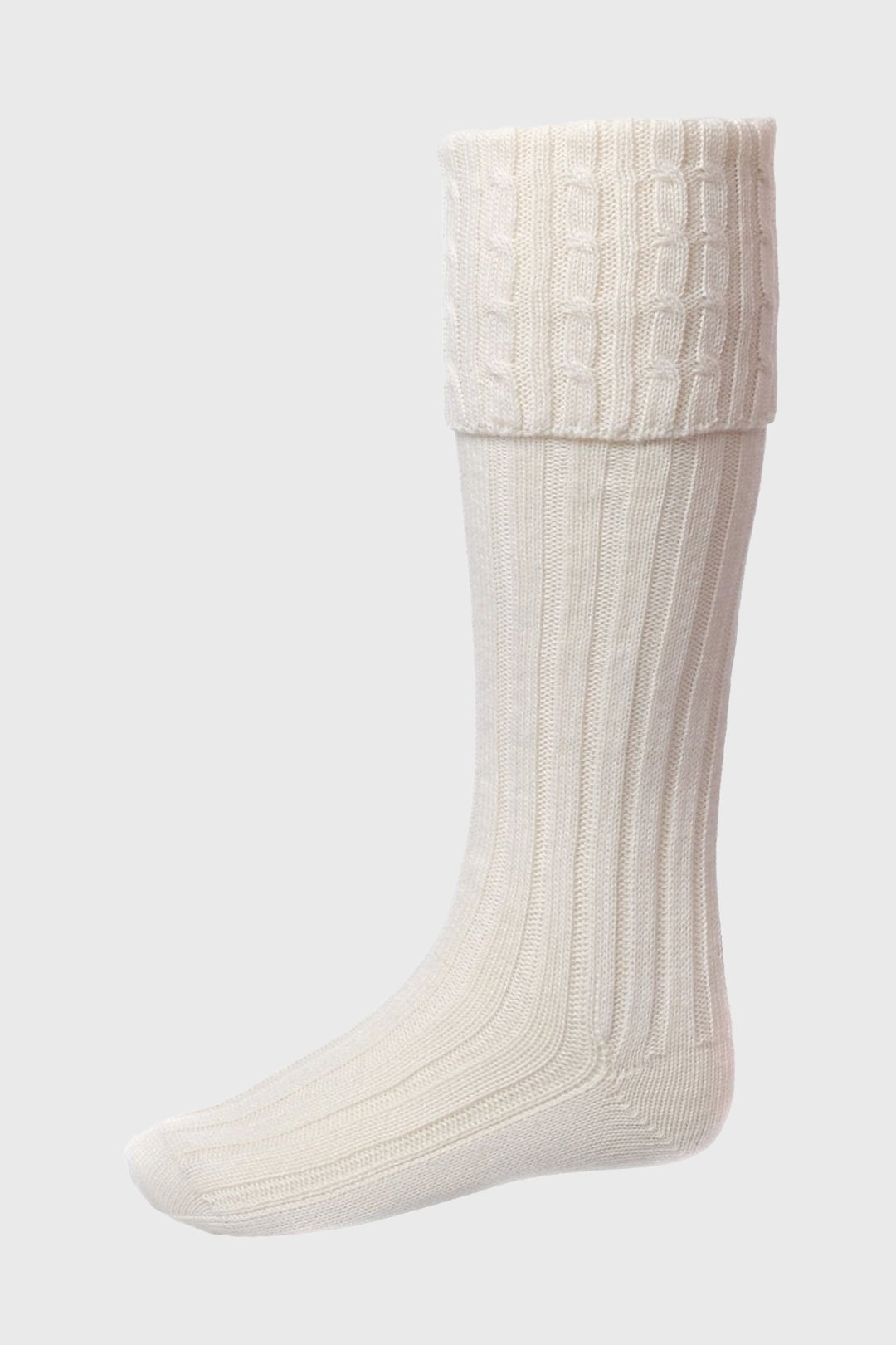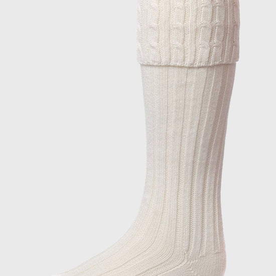 Merino wool blend sock with a fully reinforced foot, plain rib leg and vertical patterned top.