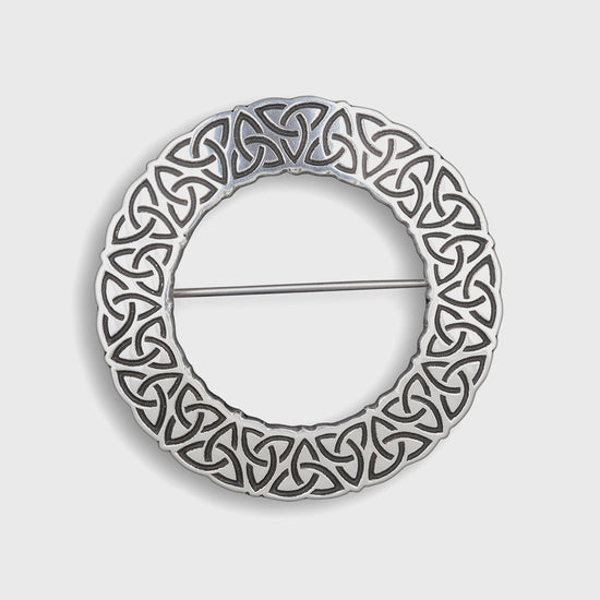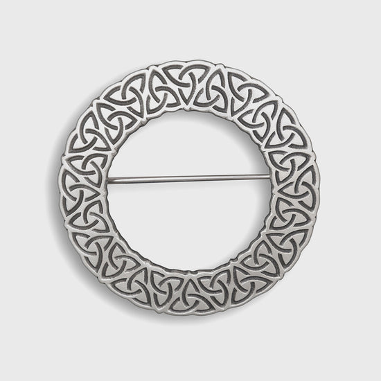 Delve into the heart of Celtic heritage with our Fáinne Celtic Circle Pewter Plaid Brooch, a testament to intricate artistry and timeless elegance. The brooch features an elaborate Celtic Knot design, symbolising eternal life and the interconnectedness of all things. Handcrafted with precision and care in Britain, this piece is not just an accessory; it's a wearable emblem of history and culture, meticulously designed to connect you with Celtic traditions.