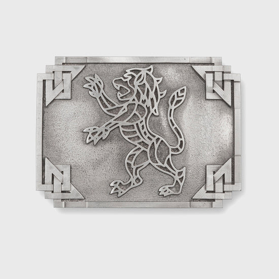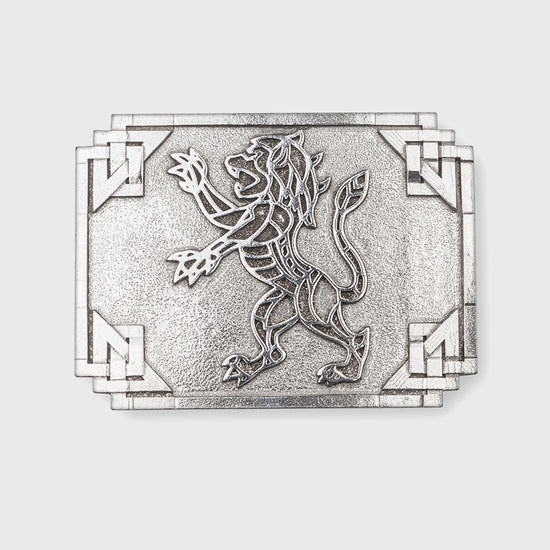 Geometric Rampant Lion Pewter Kilt Belt Buckle
