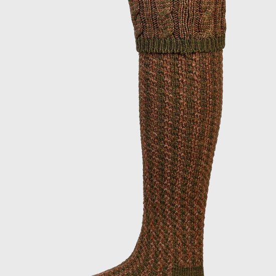 Merino wool blend sock with a fully reinforced foot, plain rib leg and vertical patterned top.
