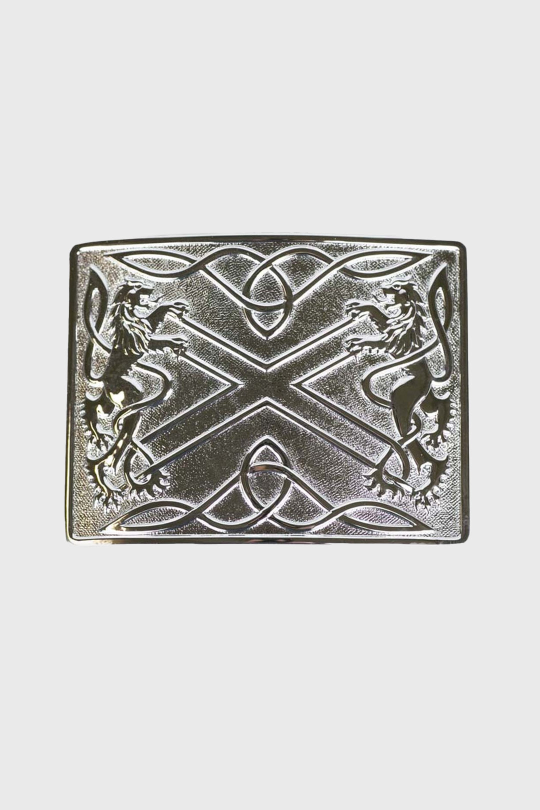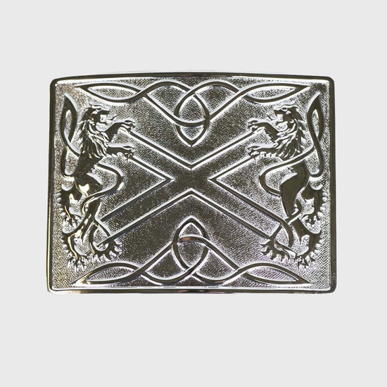 Chrome silver finish Saltire buckle, with Lion Rampants on either side.
