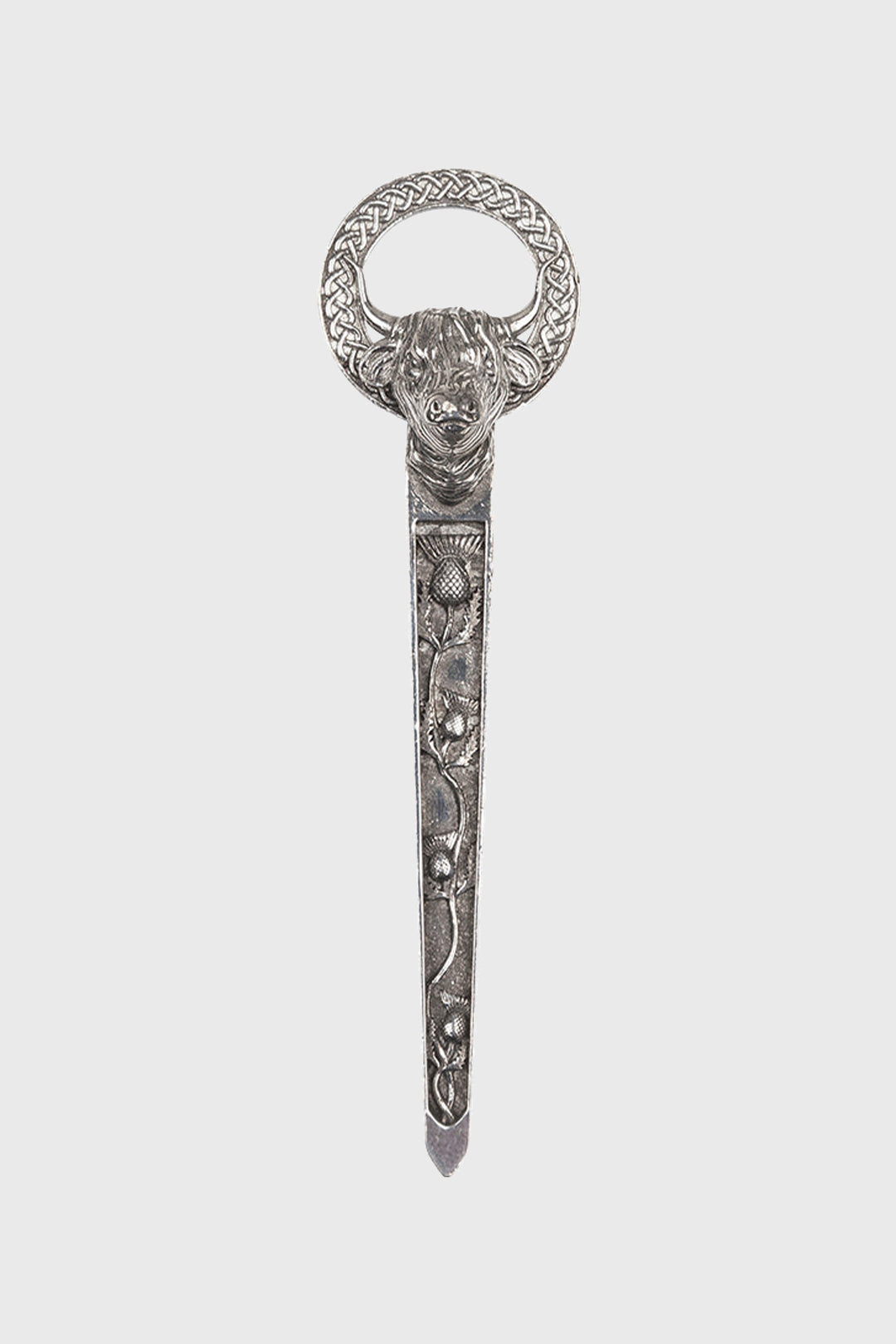 Add a distinctive finishing touch to your kilt outfit with this Highland Coo and Thistles kilt pin. Expertly handcrafted from high-quality pewter with multiple finishes, this striking accessory is designed to stand out.