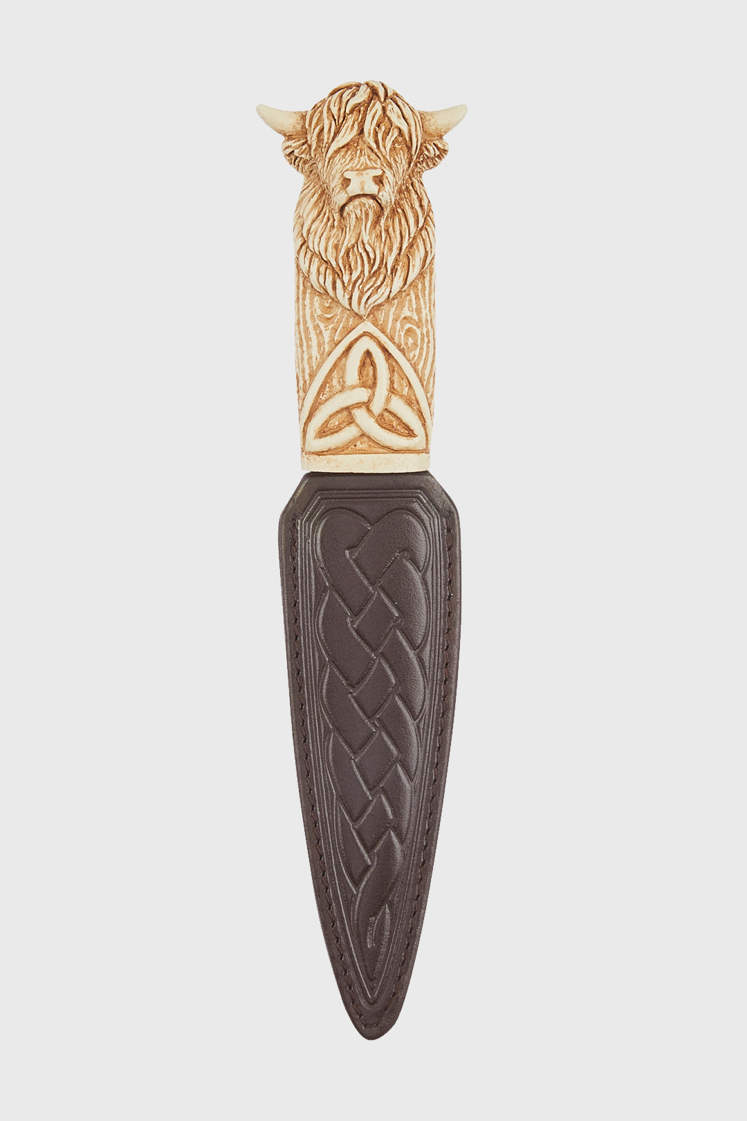 Celebrate Scotland’s heritage with this Highland Cow Resin Sgian Dubh in a classic ivory finish. Featuring a finely detailed Highland cow design, this sgian dubh symbolises the strength and charm of the Scottish Highlands while adding a traditional finishing touch to your Highland dress.