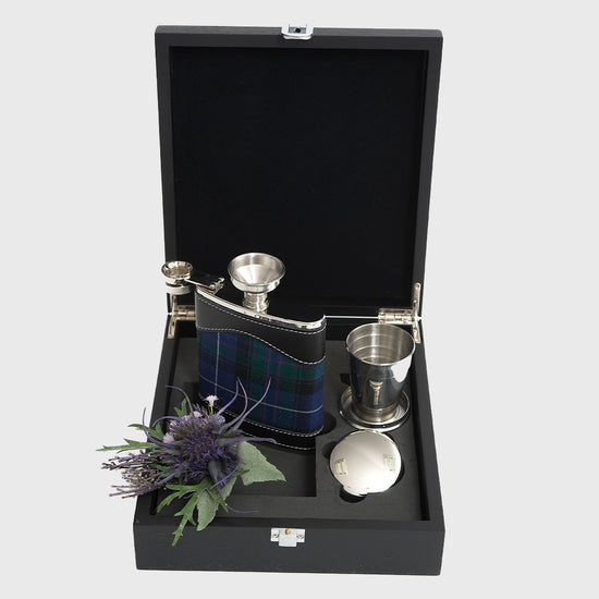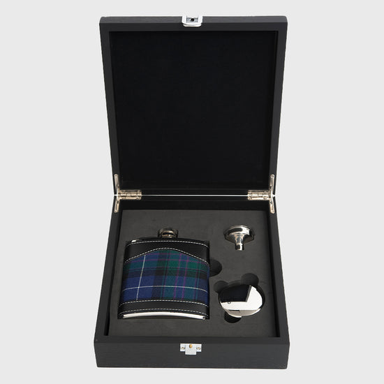 Celebrate tradition with this Highland Pride tartan hip flask gift set. The stainless steel flask, funnel, and collapsible cup are neatly presented in a black wood-effect box — a stylish and practical tribute to Scotland’s heritage.