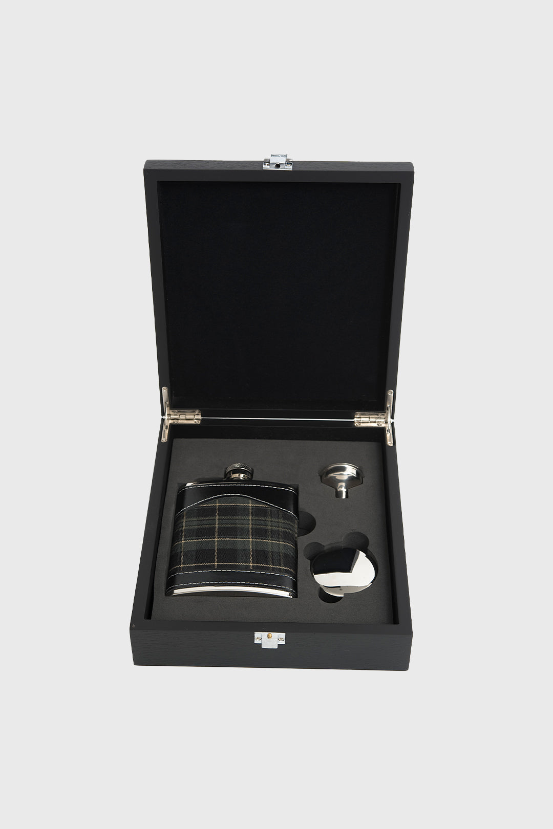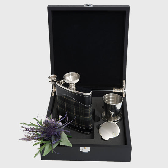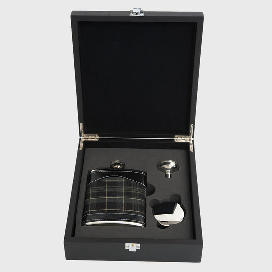 Crafted for those with a love of the outdoors, this gift set includes a stainless steel hip flask wrapped in Hunting Pride tartan. With a funnel and collapsible cup, all presented in a black wood-effect box, it’s rugged, refined, and ready to gift.