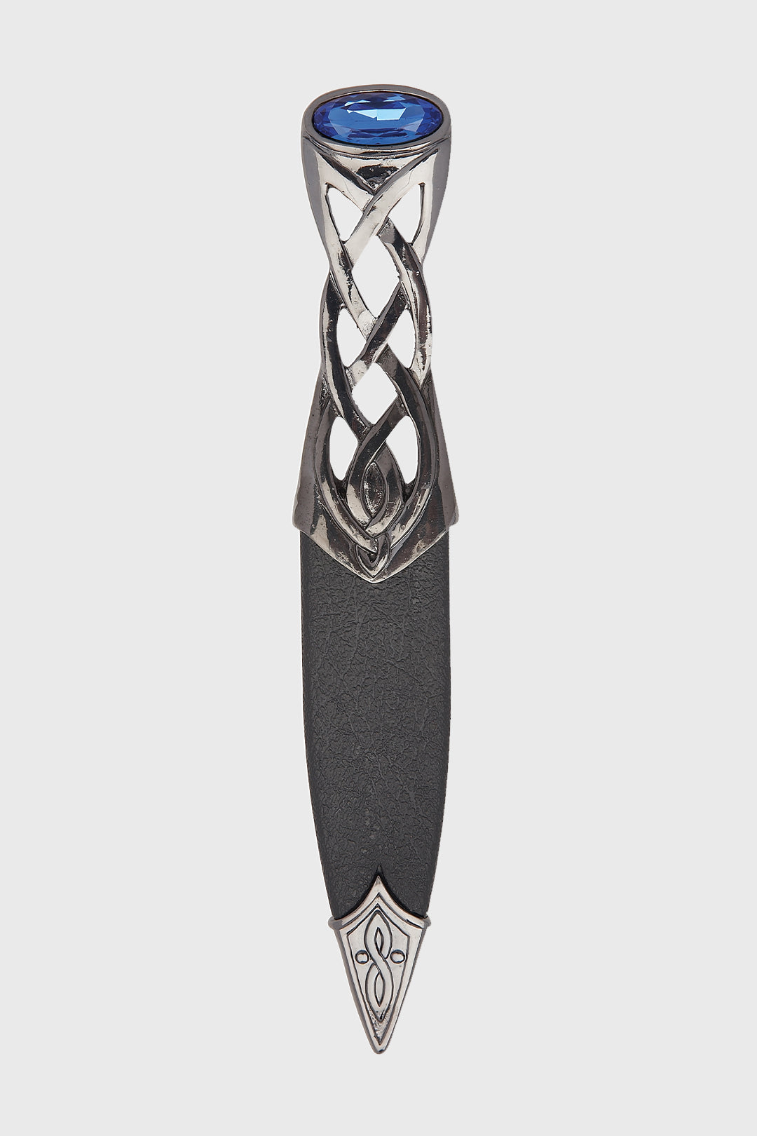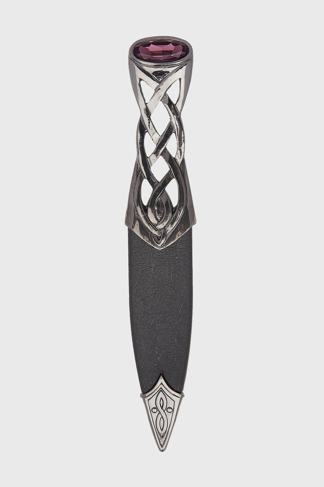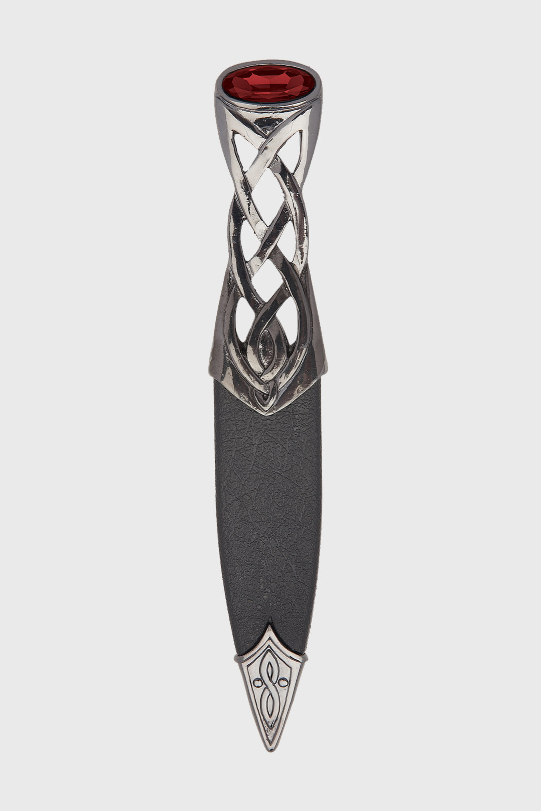Complete your Highlandwear with the Islay Celtic Polished Pewter Sgian Dubh, a beautifully crafted accessory that weaves together Scottish tradition and Celtic design. Featuring intricate Celtic knotwork on a polished pewter handle, this sgian dubh is topped with a striking coloured stone, allowing you to personalise your look.