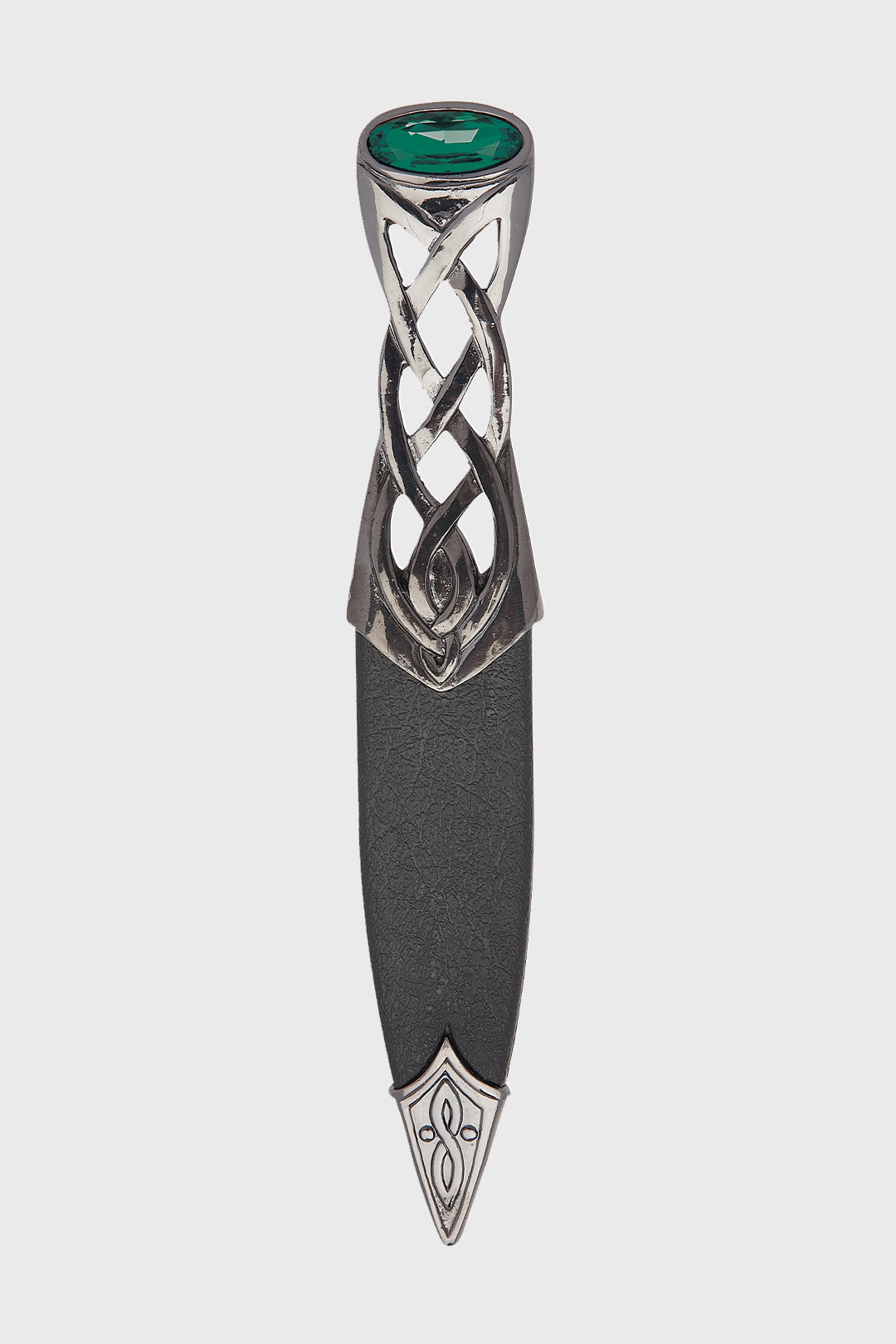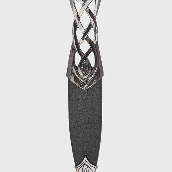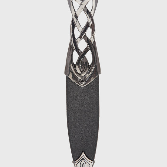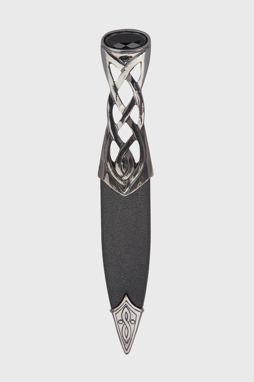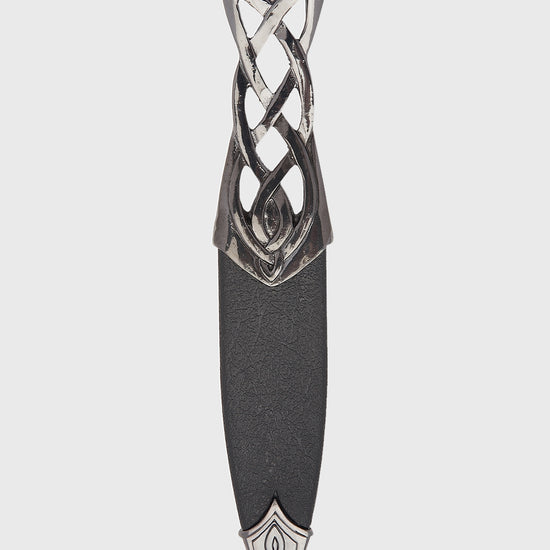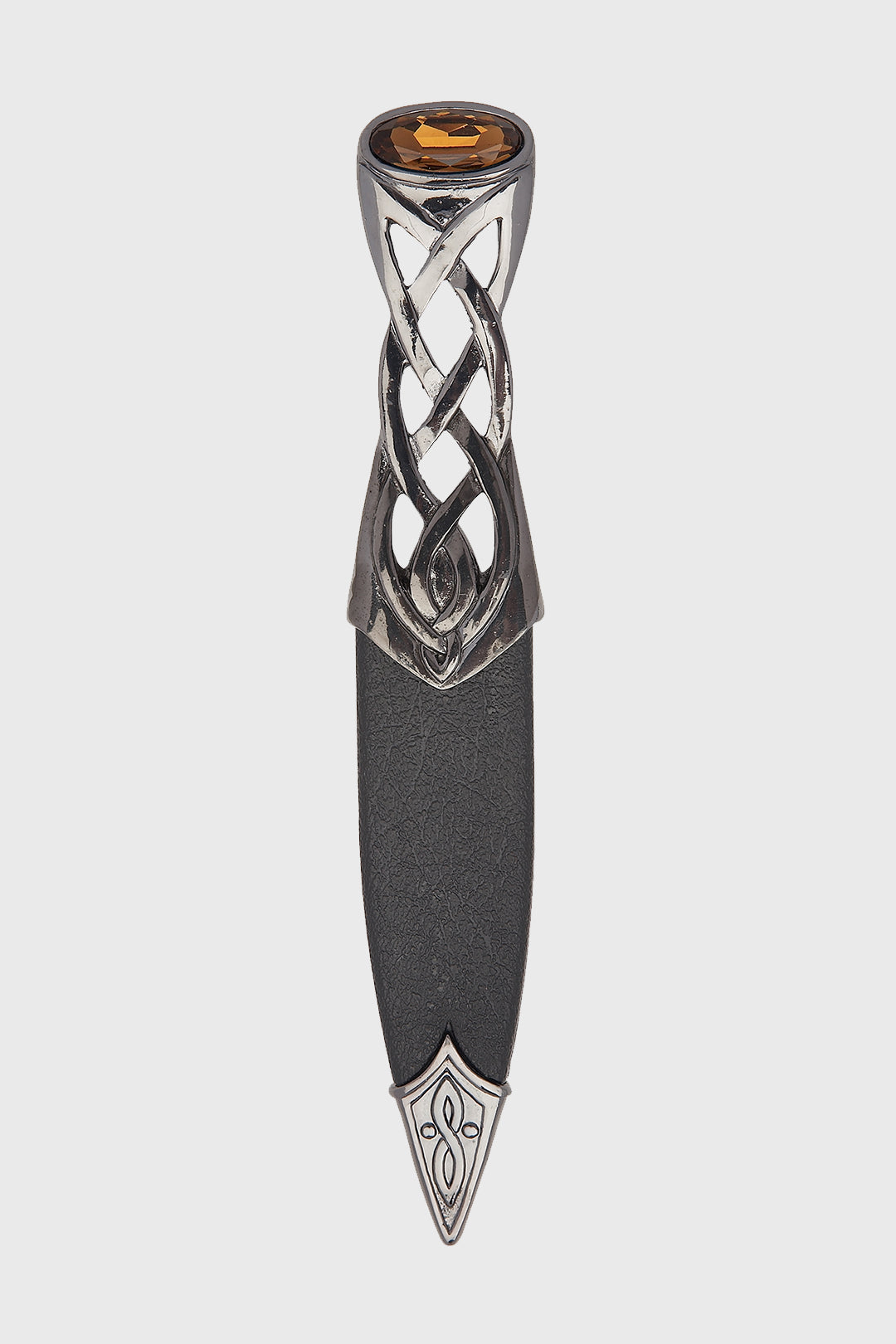 Complete your Highlandwear with the Islay Celtic Polished Pewter Sgian Dubh, a beautifully crafted accessory that weaves together Scottish tradition and Celtic design. Featuring intricate Celtic knotwork on a polished pewter handle, this sgian dubh is topped with a striking coloured stone, allowing you to personalise your look.