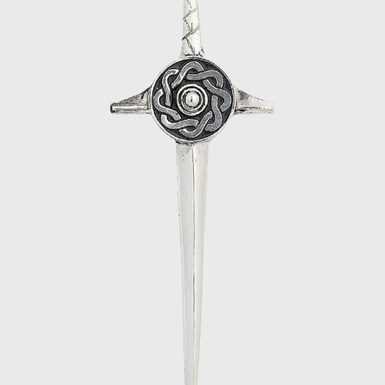 Complete your Highland outfit with this striking Celtic Sword Kilt Pin, expertly crafted in polished pewter silver. Featuring a traditional sword design topped with a detailed Celtic motif, this kilt pin combines Scottish heritage with timeless craftsmanship.