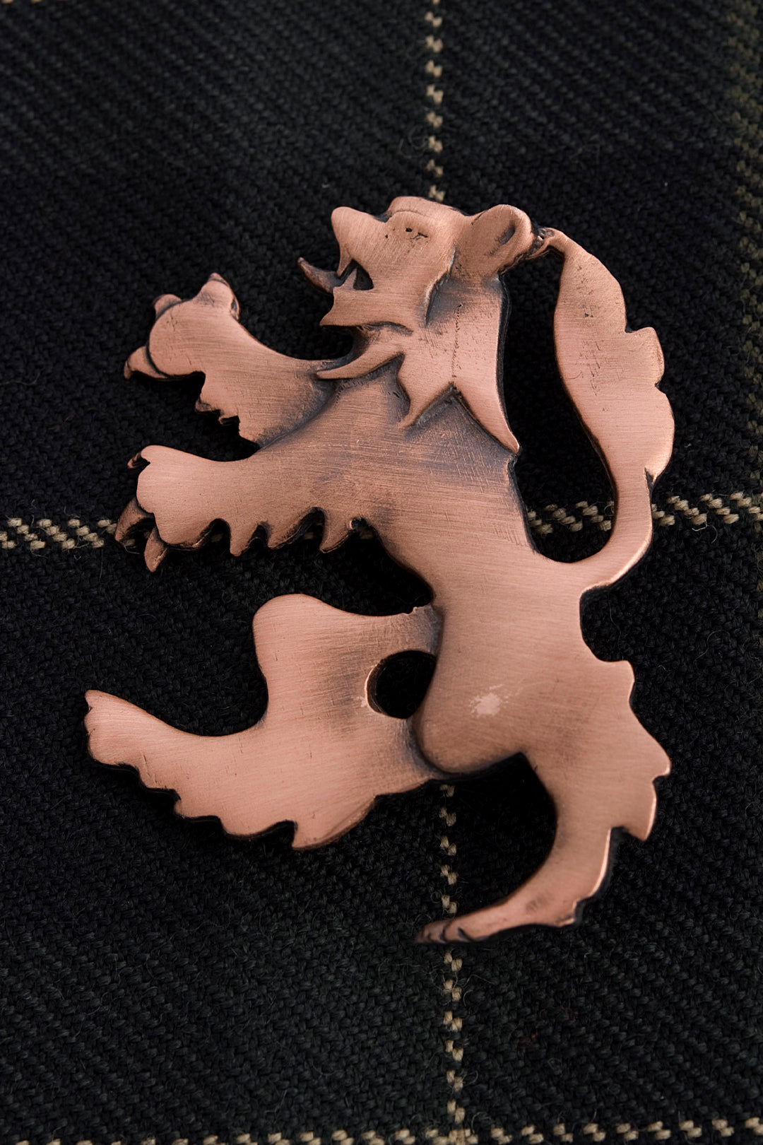 Add a distinctive finishing touch to your kilt outfit with this large Lion Rampant kilt pin. Expertly handcrafted from high-quality pewter in a copper finish, this striking accessory is designed to stand out.