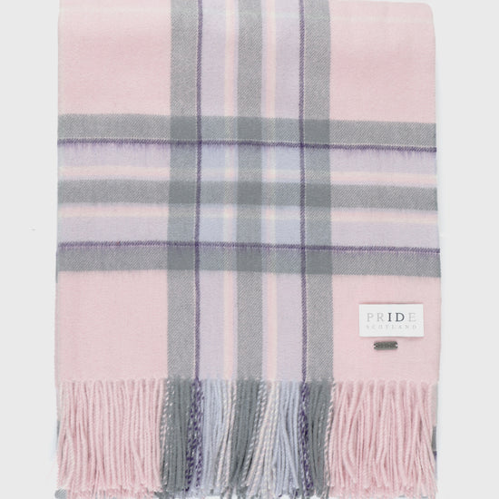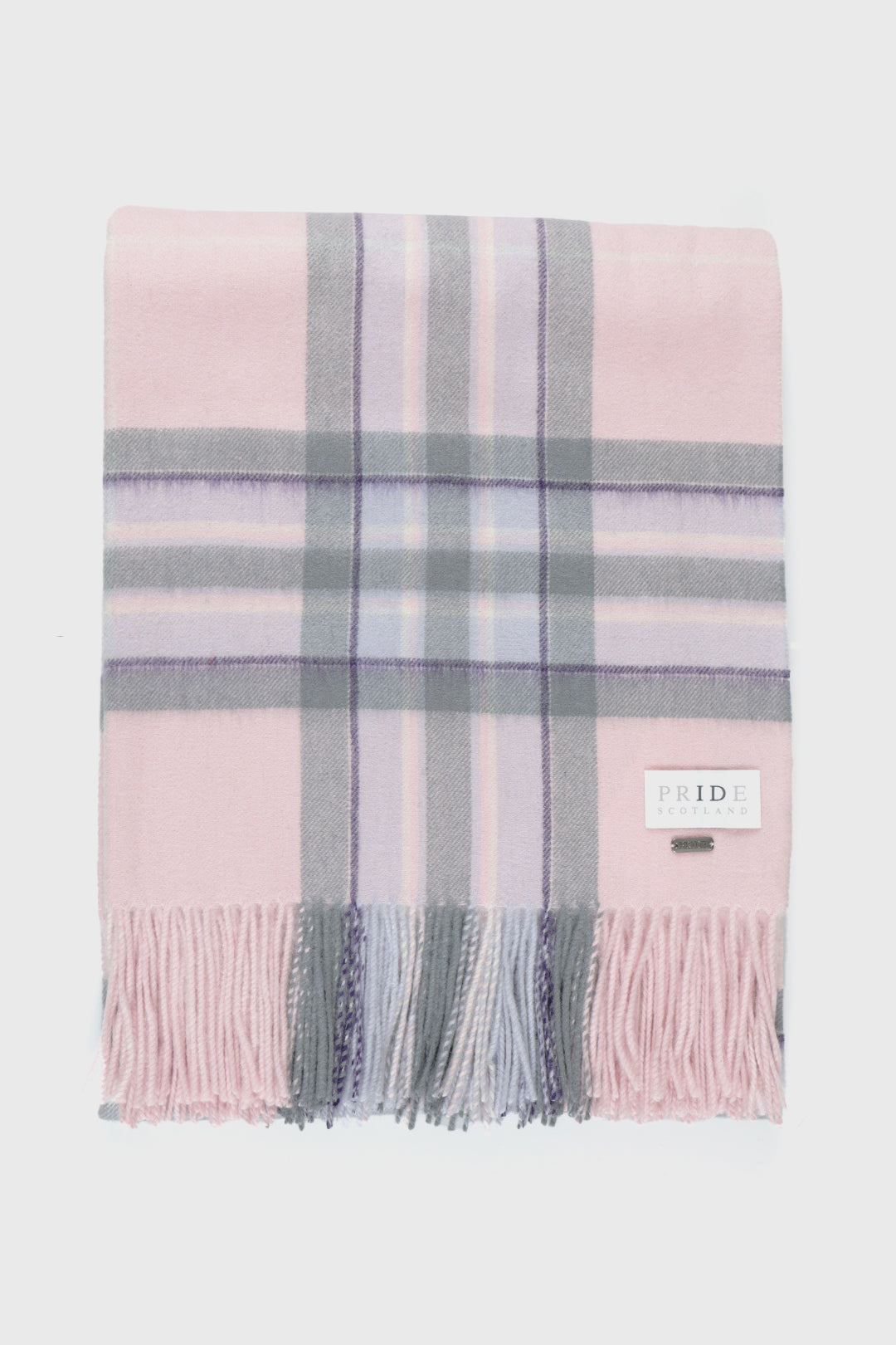 Cherry Blossom Tartan Blanket combines classic Highland style with everyday comfort, woven from pure 100% lambswool for a finish that’s soft, lightweight, and naturally warm. Featuring the soft tones of pink, light grey, and purples of our exclusive Cherry Blossom Tartan, it brings a timeless touch to any space.