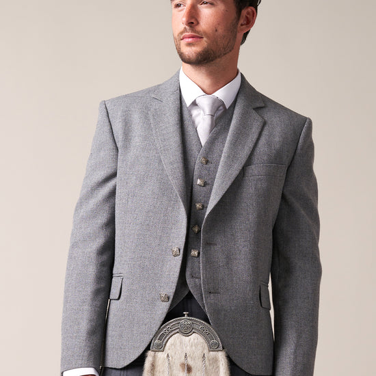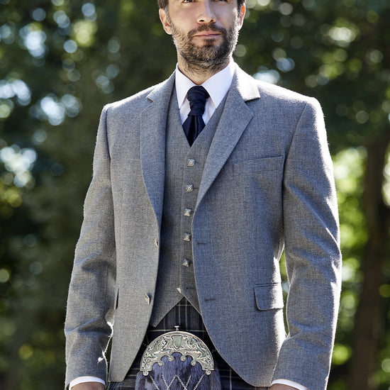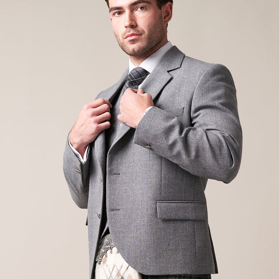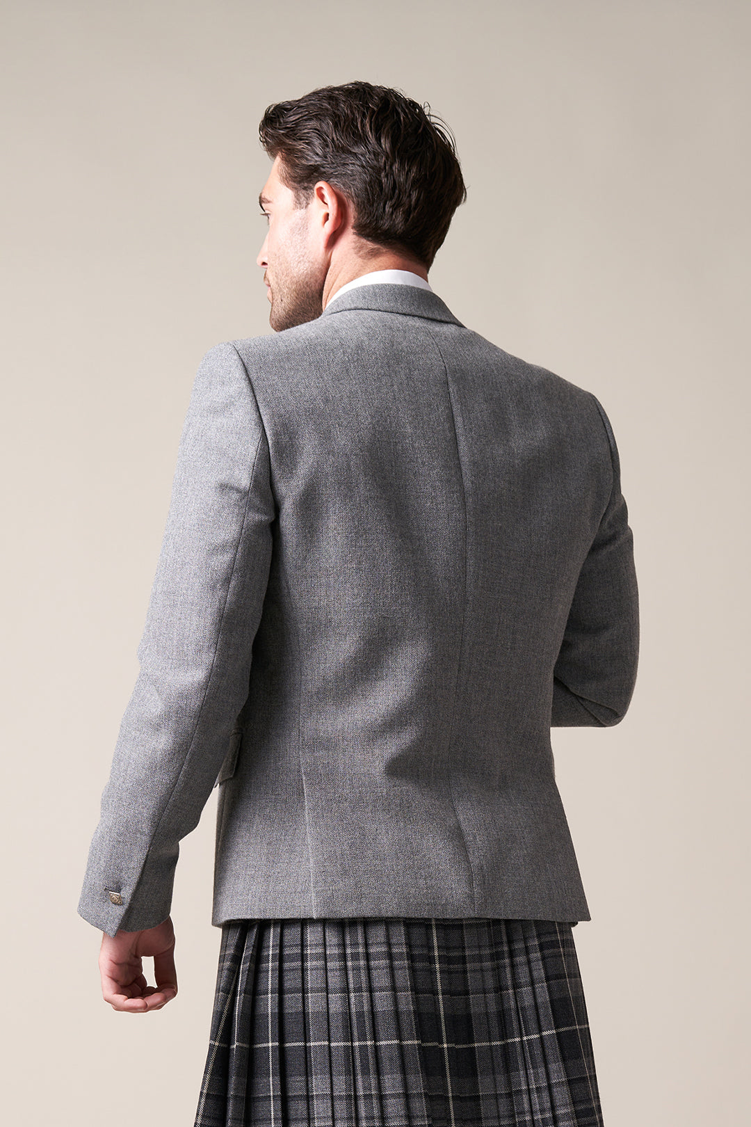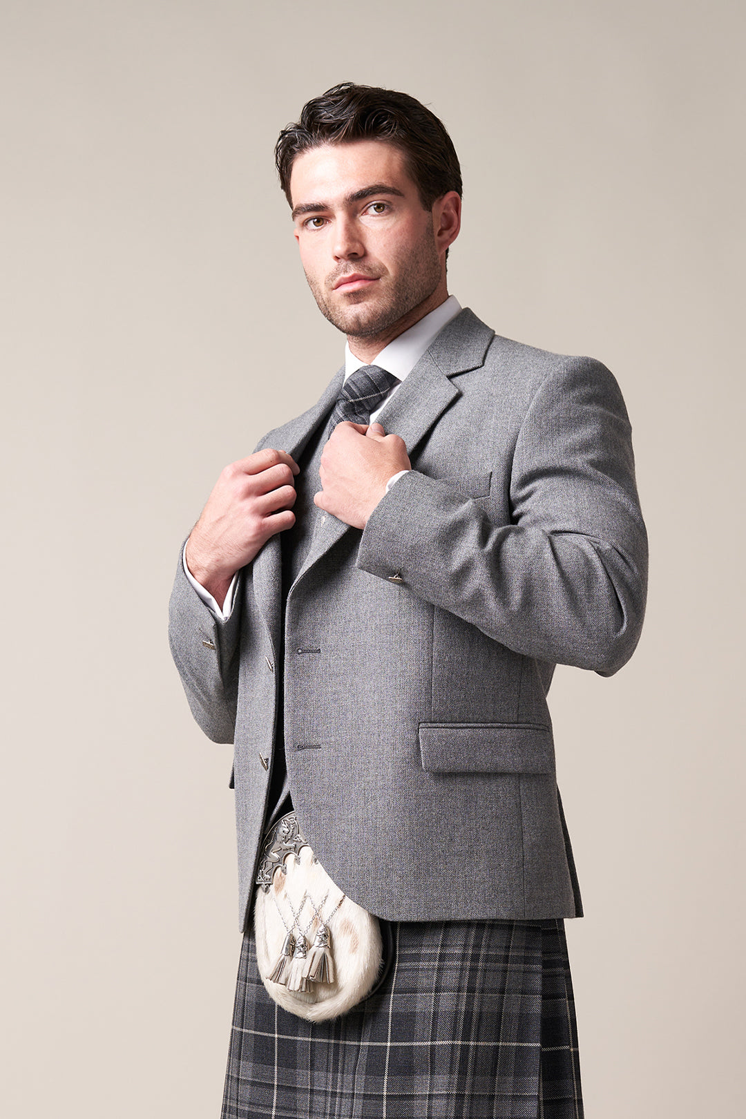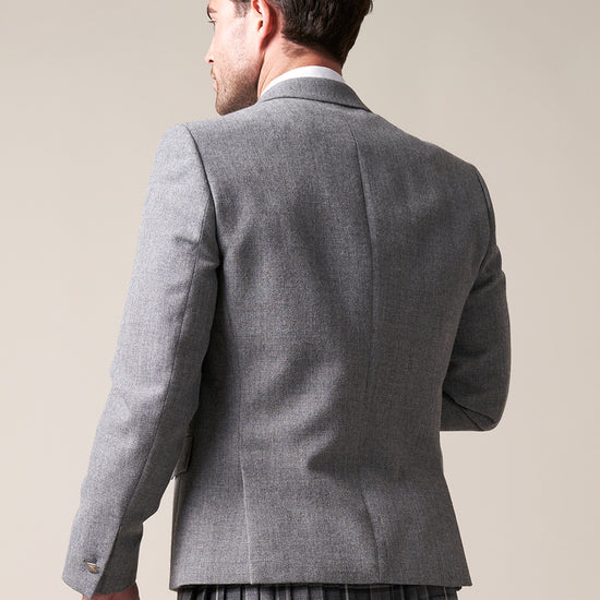 Crafted in Tweed, this Light Grey Contemporary Jacket mixes timeless style with modern refinement. The single-breasted jacket features a smart two-button closure, with single-button vented cuffs. Silver buttons add a distinctive touch, with the lining finished in a sharp, grey fabric, for a polished, cultured look.