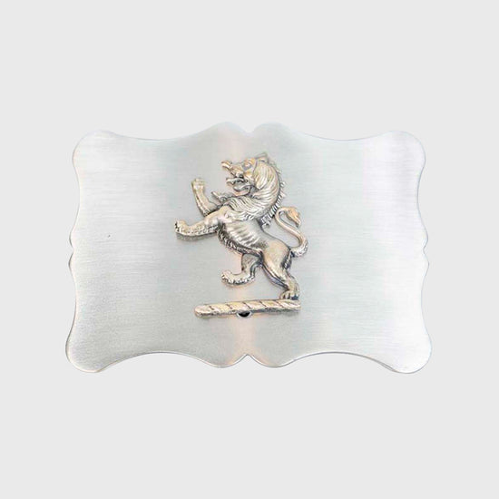 Antique finish traditional kilt belt buckle style with a Lion Rampant centre badge.