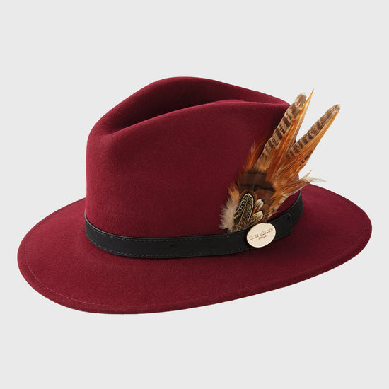 The stunning wool felt Suffolk Fedora is a timeless addition to your multi-seasonal wardrobe, hand finished with a cluster of natural feathers fastened behind a branded leather band.