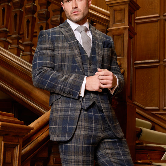 The perfect finishing touch, the Midnight Pride Tweed waistcoat brings depth and sophistication to the ensemble. Featuring a tailored cut in the classic tartan, it can be worn as part of the full three-piece suit or styled on its own for a smart, contemporary look.