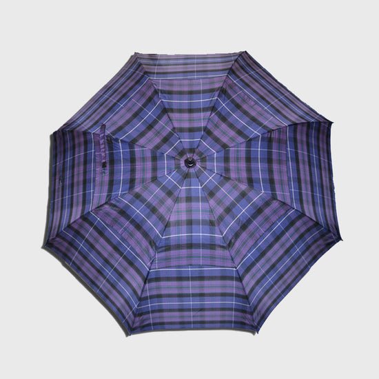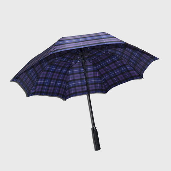 A double canopy automatic golf umbrella in Modern pride. Matching tartan sleeve included with 2 long handles for ease of carrying.