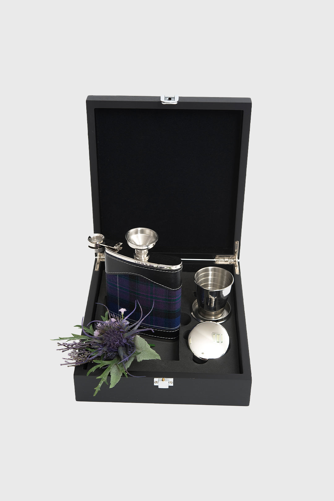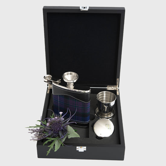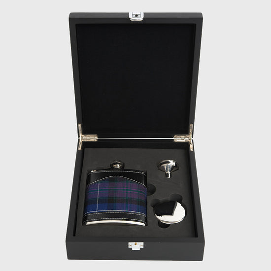 Blending tradition with a modern edge, this stainless steel hip flask is finished in bold Modern Pride tartan. Supplied with a funnel and collapsible cup in a black wood-effect box, it’s a versatile gift with timeless appeal.
