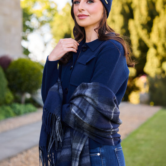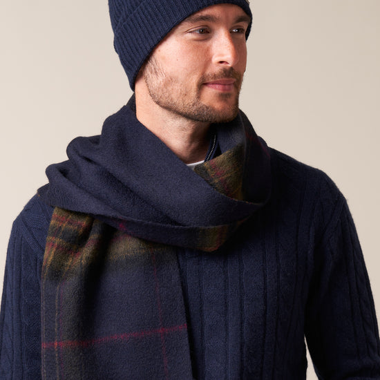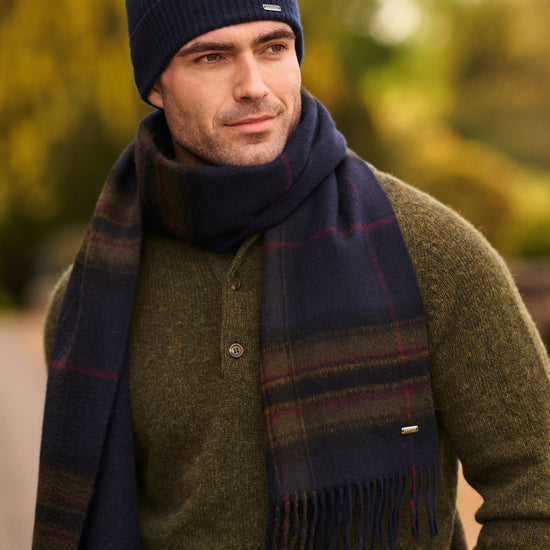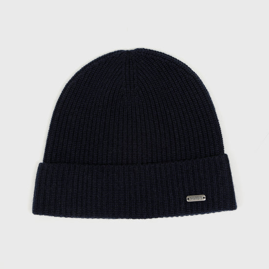 Crafted from a luxurious 70% wool, 30% cashmere blend, the Navy Pride Ribbed Beanie combines warmth with classic style. The ribbed knit ensures a comfortable, flexible fit, while the deep navy shade makes it a versatile winter essential. Finished with the metal bar tag, it balances tradition with modern detail.