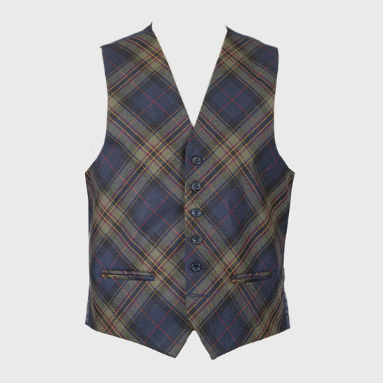 A cut on the cross Noble Pride tartan waistcoat with 6 buttons and 2 low jetted pockets. This item is to be worn with high-rise waisted trews or a kilt.