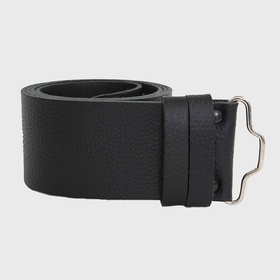 Black textured leather trews belt.