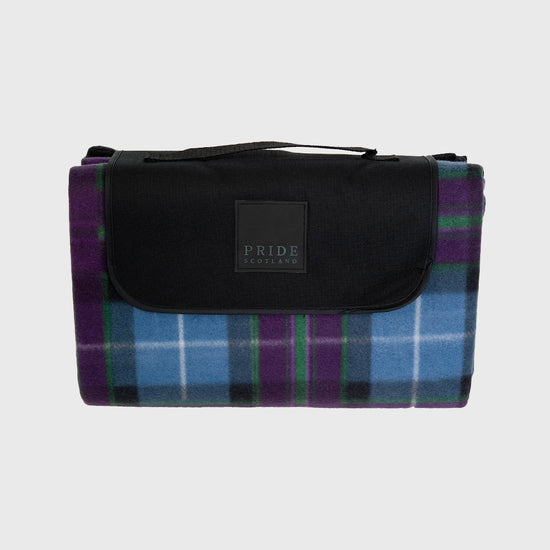 A waterproof picnic rug in the Ancient Pride tartan, opens out to 1.7m x 1.3m and folds up neatly with a velcro fastening and carry strap.