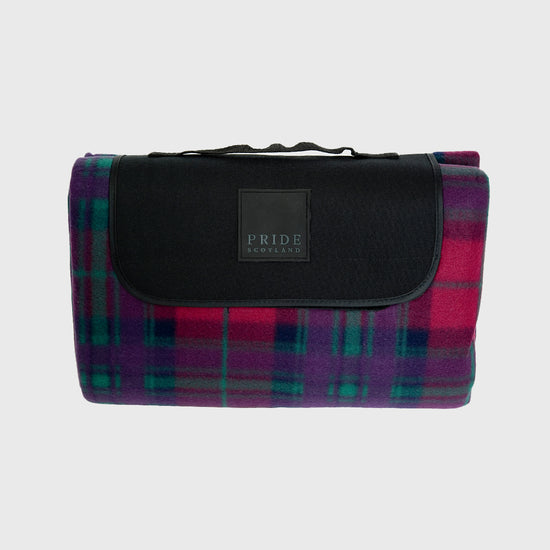A waterproof picnic rug in the Autumn Pride tartan, opens out to 1.7m x 1.3m and folds up neatly with a velcro fastening and carry strap.