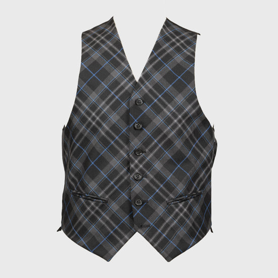 A cut on the cross Royal Pride tartan waistcoat with 6 buttons and 2 low jetted pockets. To be worn with high-rise waisted trews or kilt.