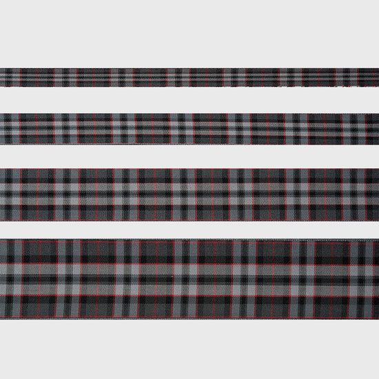 Centered tartan ribbon available in multiple widths. Perfect for those finishing touches on anything from buttonholes, invitations to cake decorations.