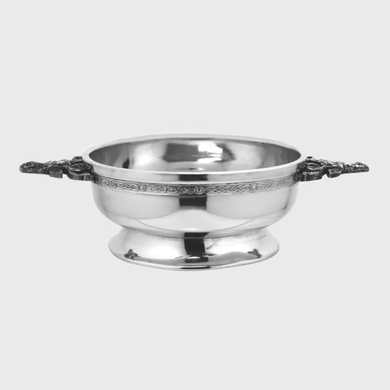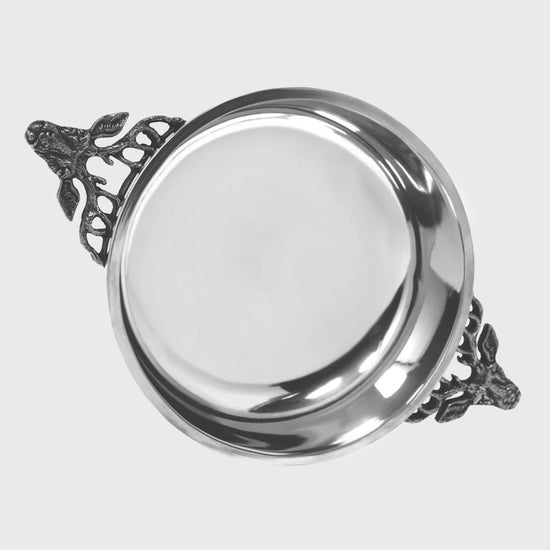 Elegantly crafted from polished pewter, this quaich features striking stag head handles — a symbol of strength, heritage, and the spirit of the Highlands. Supplied in a smart presentation box, it makes a memorable gift or treasured keepsake. The word quaich comes from the Gaelic cuach, meaning “shallow cup” — celebrated for centuries as Scotland’s traditional cup of friendship.