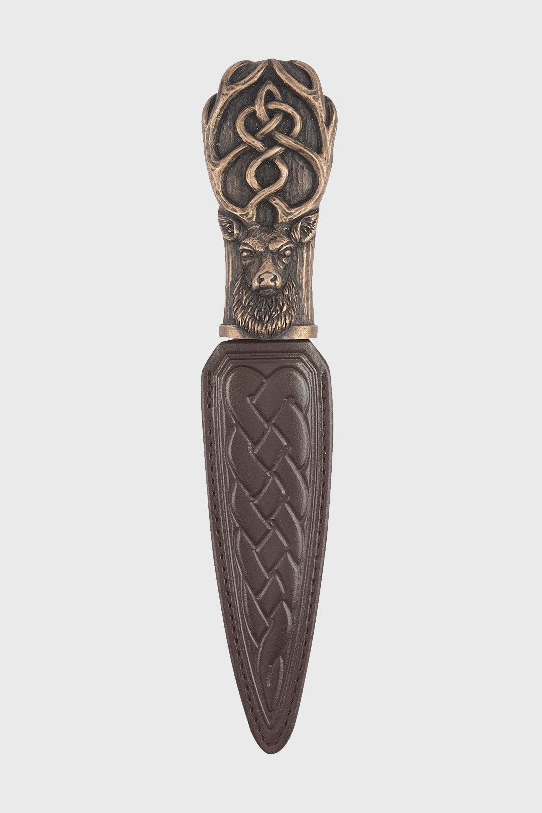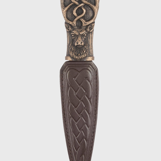 Bring tradition and heritage to your Highlandwear with this Stag Resin Sgian Dubh in a striking bronze finish. Featuring a finely detailed stag design, this sgian dubh represents strength, pride, and the untamed spirit of the Scottish Highlands, making it an essential accessory for any kilt ensemble.