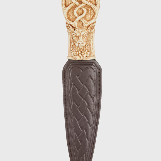 Add a touch of Scottish tradition to your Highlandwear with this Stag Resin Sgian Dubh in a classic ivory finish. Featuring a finely detailed stag design, this sgian dubh symbolises strength, pride, and the natural spirit of the Highlands, making it the perfect finishing touch to any kilt outfit.
