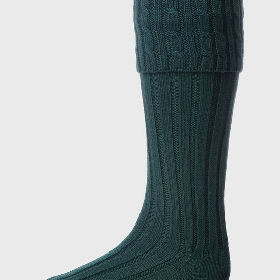 Merino wool blend sock with a fully reinforced foot, plain rib leg and vertical patterned top.