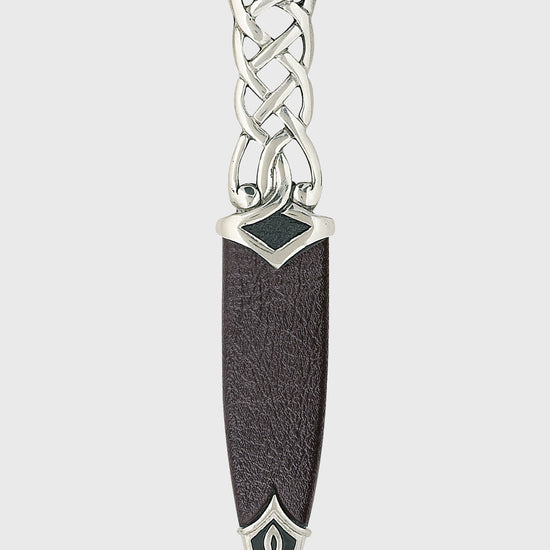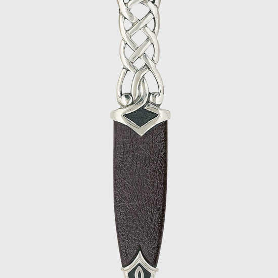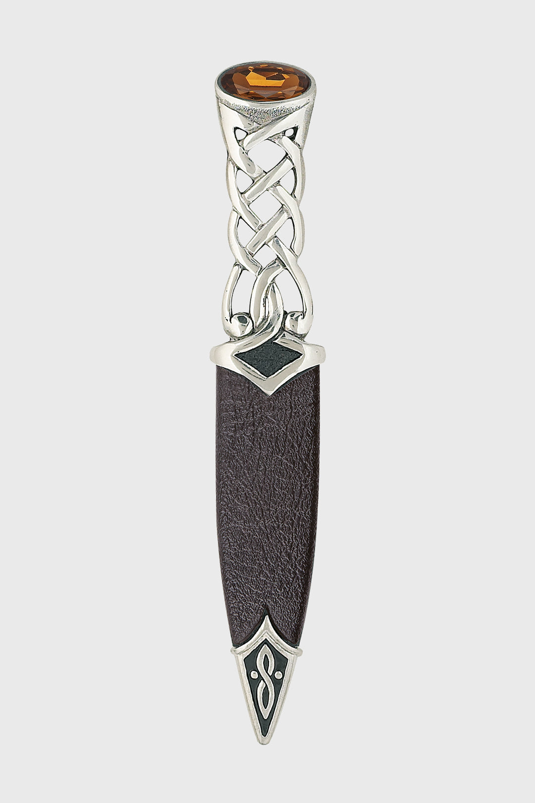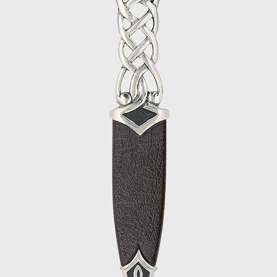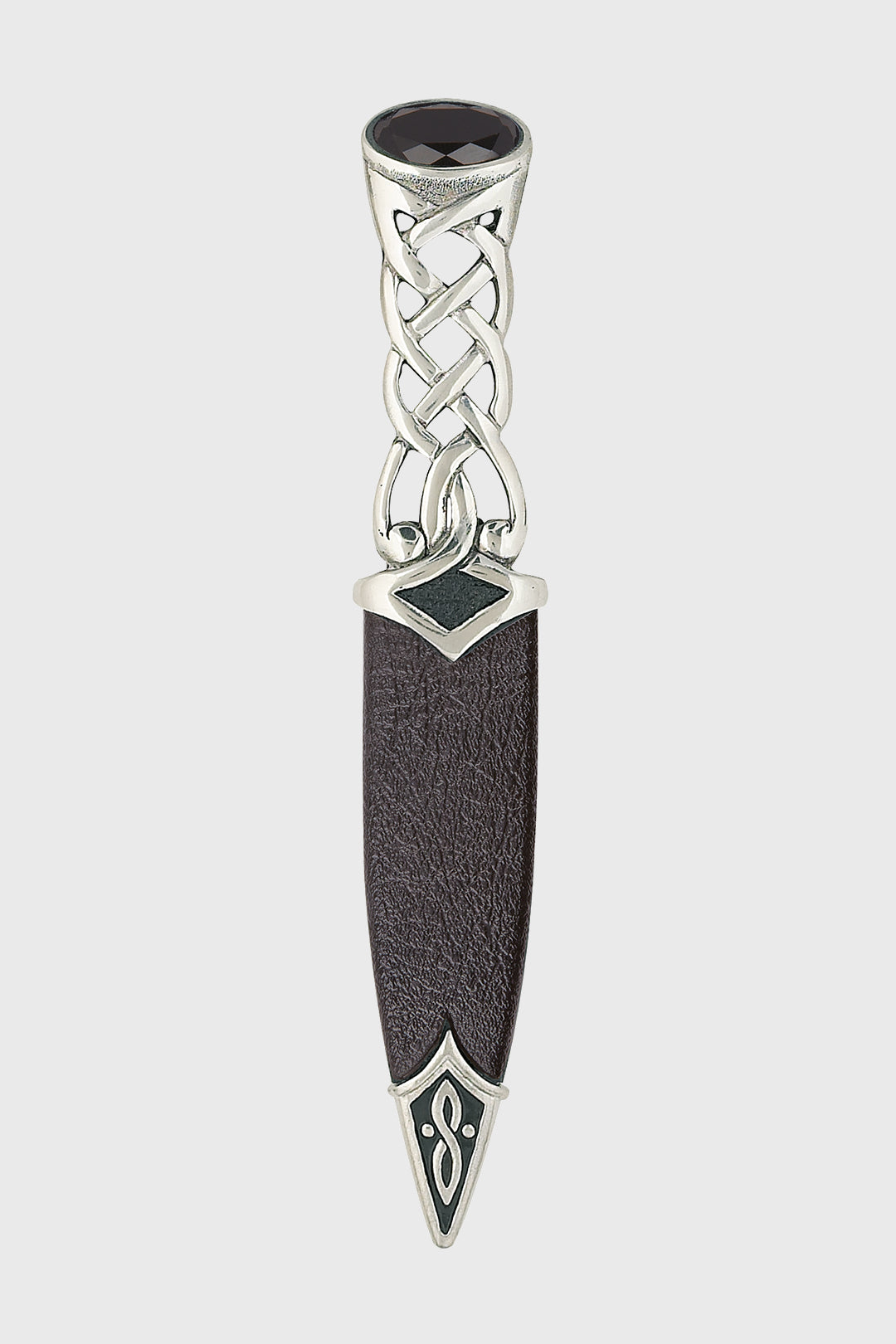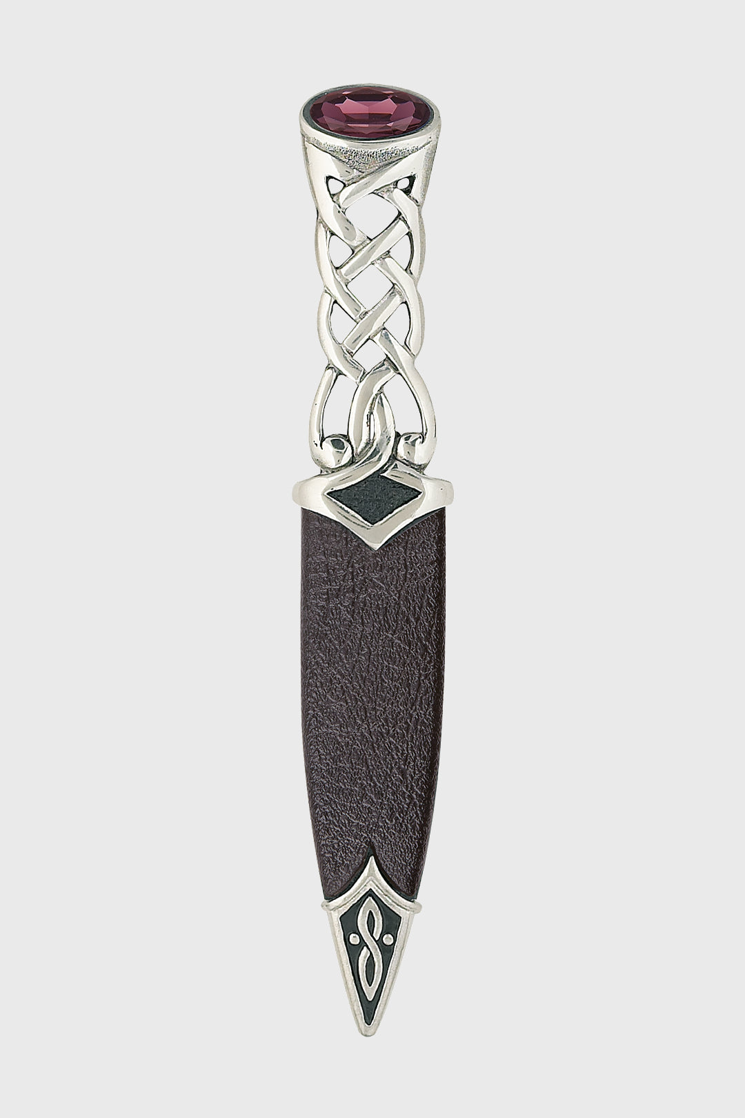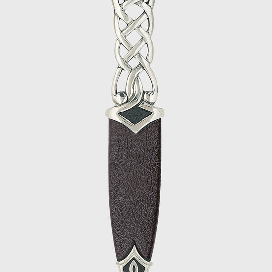 Complete your Highlandwear with the Tay Celtic Polished Pewter Sgian Dubh, a beautifully crafted accessory that weaves together Scottish tradition and Celtic design. Featuring intricate Celtic knotwork on a polished pewter handle, this sgian dubh is topped with a striking coloured stone, allowing you to personalise your look.