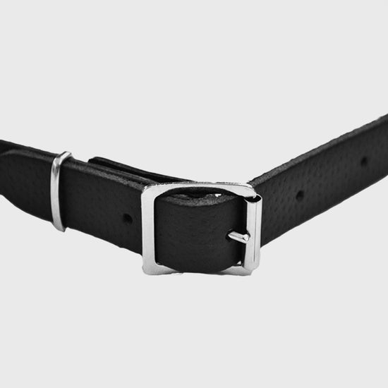 Black leather strap with an antique finished celtic design chain.