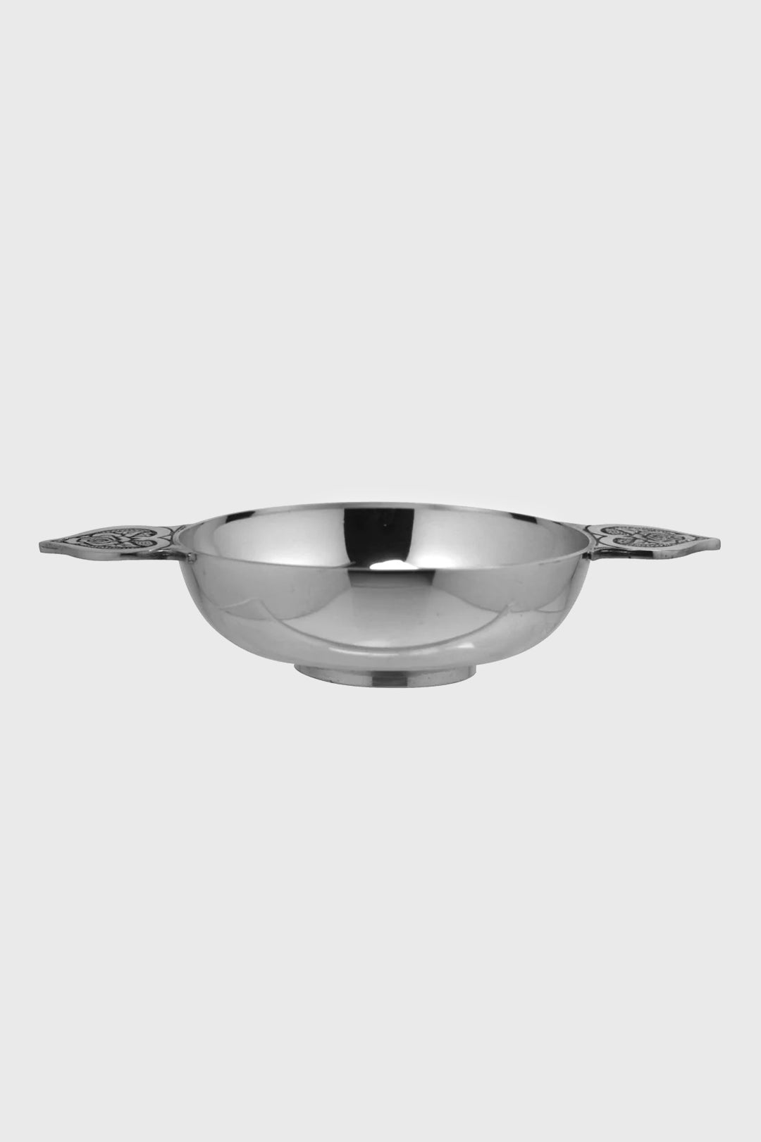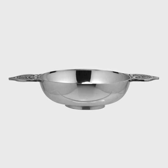 Crafted in polished pewter, this 4" quaich features elegant heart-shaped handles — a symbol of love, unity, and friendship. Beautifully presented in a gift box, it makes a meaningful keepsake for weddings, anniversaries, or special occasions. The word quaich is taken from the Gaelic cuach, meaning “shallow cup” — celebrated in Scotland as the traditional cup of friendship.