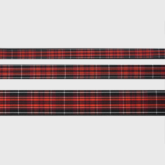 Centered tartan ribbon available in multiple widths. Perfect for those finishing touches on anything from buttonholes, invitations to cake decorations.